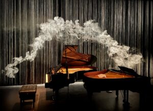 Pour Jazz Magic, nous nous sommes intéressés à l’improvisation, nous avons analysé les similarités qui existent entre la cartomagie et le jazz. Avec Sorcellerie pour deux pianos, nous réalisons un concert de musique classique avec une sélection de pièces autour de la sorcellerie au 19ème siècle, illustré en magie et en ombre. Quant à Tropisme poétique, c’est une installation qui vise à montrer la réaction des plantes et leurs mouvements grâce à la musique.