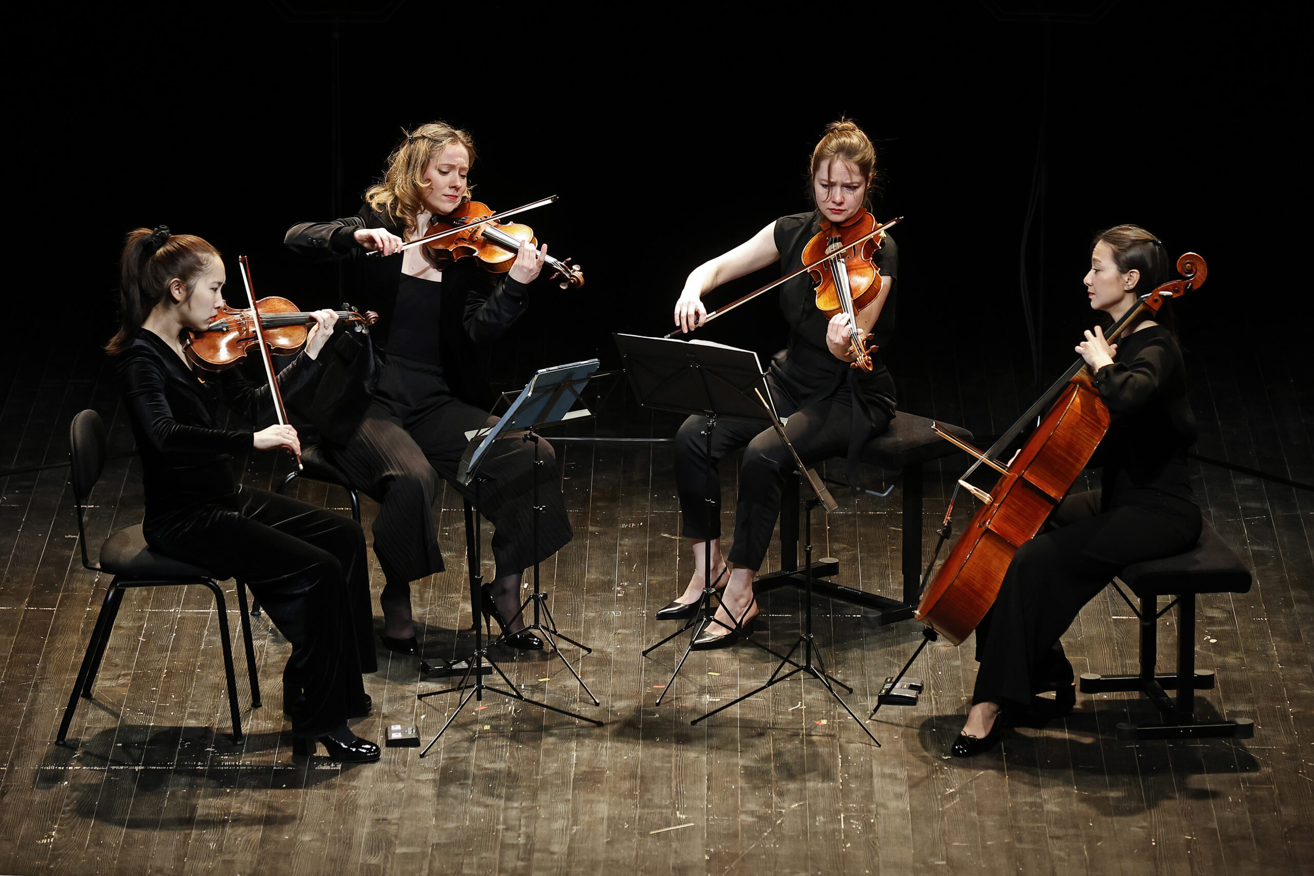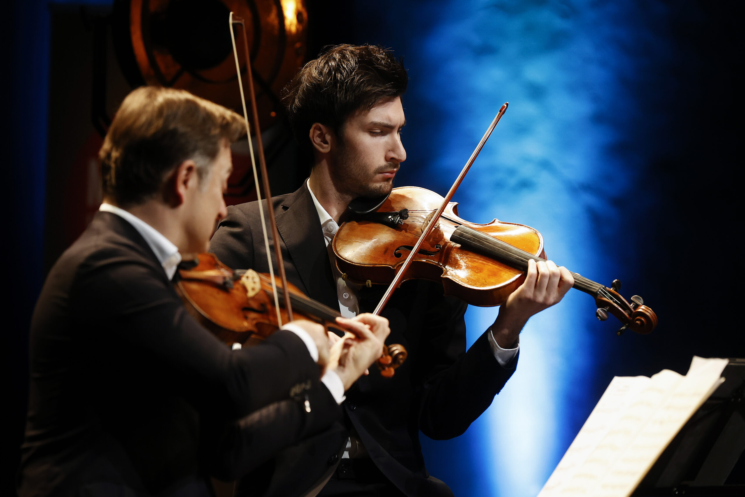 La matinée et la journée se terminent ainsi par l’écoute de la musique, ce langage universel et fédérateur. Les œuvres des musiciens juifs, internés au camp de concentration de Theresienstadt (Terezin) et tués à Auschwitz, résonnent avec une bouleversante actualité dans ce lieu de mémoire. Renaud Capuçon au violon, Paul Zientara à l’alto et Krzysztof Michalski au violoncelle et le Quatuor Fidelio (Camille Fonteneau, Verena Chen, Léa Hennino et Maria Andrea Mendoza) jouent ce répertoire unique dans l’histoire de la musique du XXe siècle avec un engagement sobre et digne.