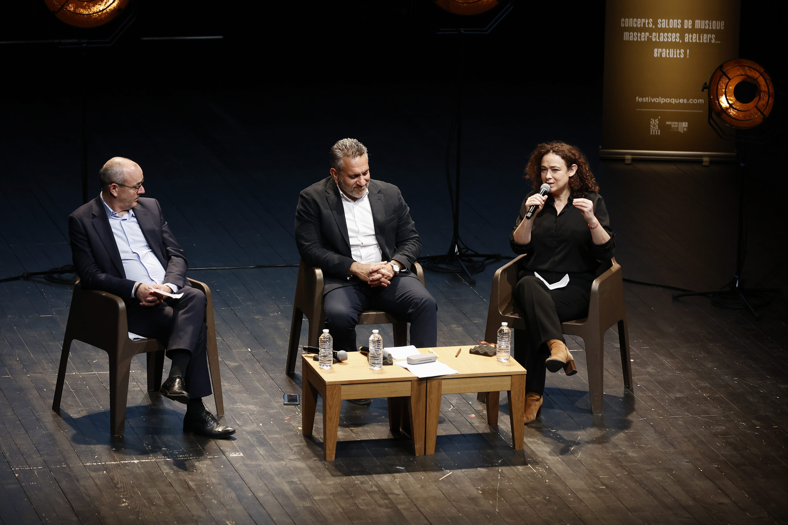 La discussion de l’après-midi portait sur « l’Engagement spirituel, responsabilité sociale et mémoire » et mettait en dialogue la rabbine et auteure Delphine Horvilleur et Laurent Berger, directeur de l’Institut Mutualiste pour l’Environnement et la Solidarité au sein du Crédit Mutuel Alliance Fédérale et – selon Dominique Bluzet, directeur du Festival – « le Premier Ministre dont tout le monde a rêvé ». Horvilleur a évoqué les dangers de l’enfermement identitaire et plaidait, avec l’humour qu’on lui connaît, pour fêter les Pâques juive et chrétienne, éloignées de trois jours seulement cette année, comme une fête de « Pas que ». « Comment se souvenir de l’histoire sans s’y enfermer ? » lance Horvilleur, ce à quoi Berger répond par une autre question : « À quoi se raccrocher pour ne pas répéter le passé ? »