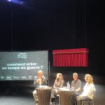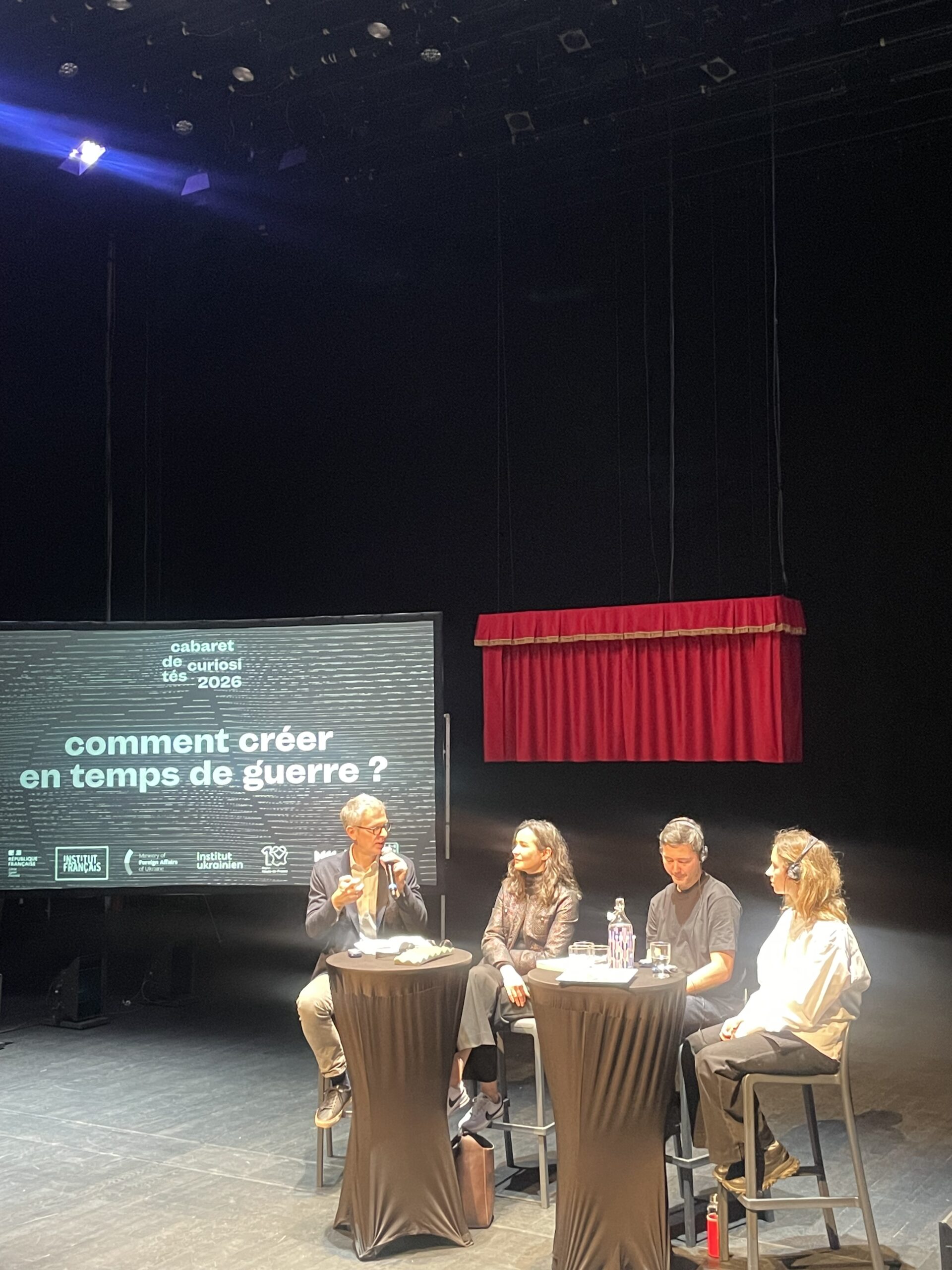 Et en effet cette édition du festival ne se limite pas à la scène. Alors que Mina Kavani est venue jouer Ma maison est noire (lire notre article) en début de festival, jeudi 5 et vendredi 6 mars les platines du halls étaient aux mains d’artistes ukrainiens qui nous ont fait danser. Et vendredi matin, une rencontre était organisée avec le Centre de culture contemporaine de Dnipro sur la création en temps de guerre. Autour de Andrii Palash, Kateryna Rusetska, de l’artiste sonore Dmytro Nikolaienko et de la DJ et chanteuse Maryana Klochko, la discussion a déplacé le regard vers l’est de l’Europe. Alors que les lycéens se sont relayés pour assister à cette conférence très pleine, les artistes ont témoigné de leur pratique. Il ont aussi expliqué comment rester sur place et y créer pour résister. Nous avons également appris beaucoup de choses sur Dnipro, ville moins connue que Kiev, Odessa, ou même Krakov si proche du front. Résistance et transmission sont donc bien les deux piliers de ce festival européen.