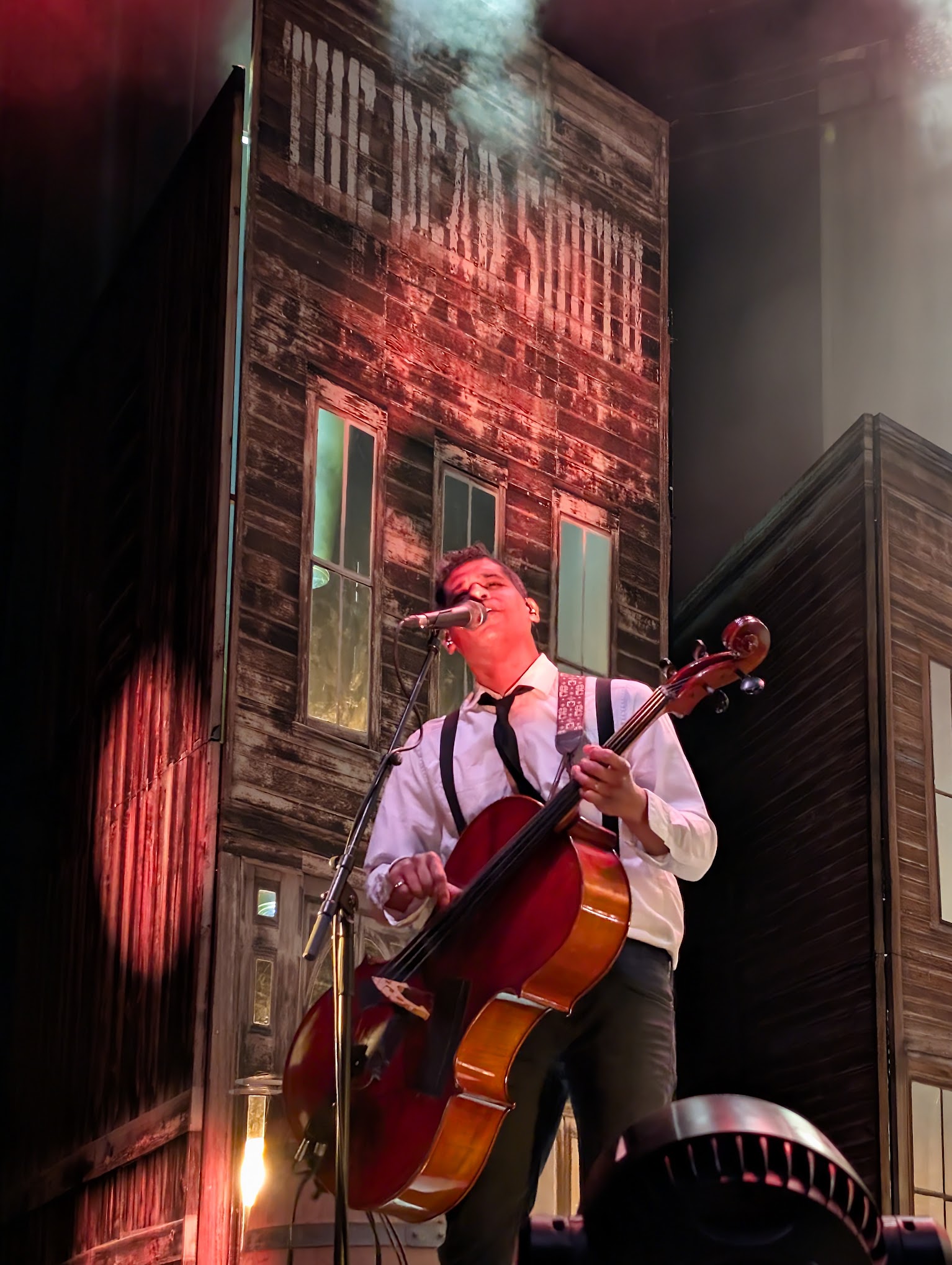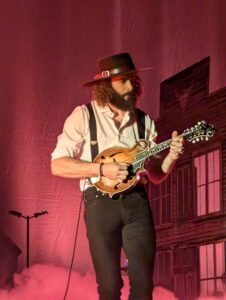 Sur la scène une « main street « a été reconstituée avec l’église au fond et on attend l’arrivé de John Waine sur son cheval blanc avec son colt argenté. Mais c’est nos lascars de Dead South qui déboulèrent du bout de la rue, avec comme arme leurs instruments et « God knows » comme c’était mieux. Nate et Scott portent des chapeaux Santiago Cordobés noir d’origine andalouse, qui les différencient des cowboys et de leur stetson.