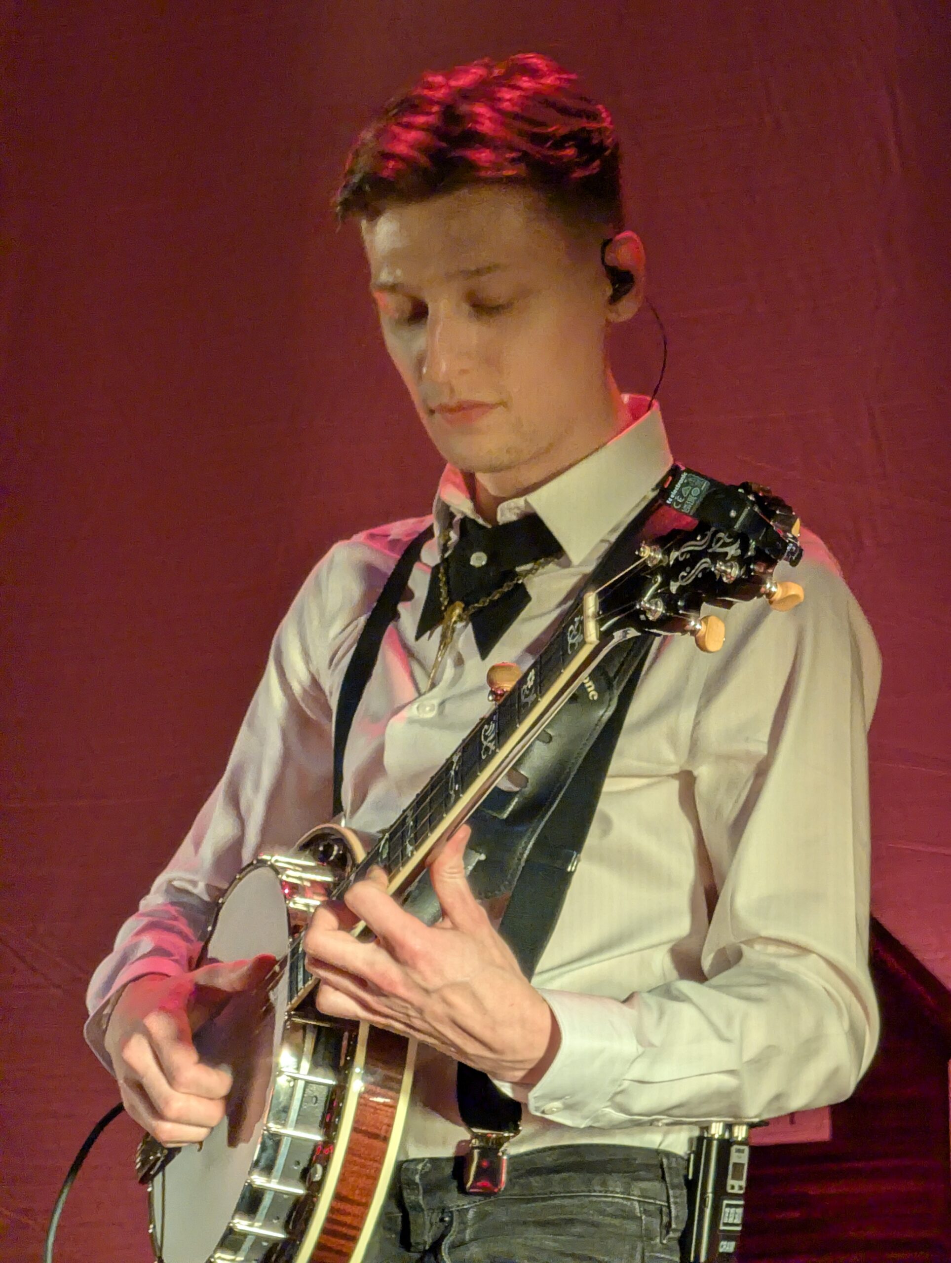 Nate prend la parole en français, avec un sympathique accent canadien. Il présente le nouveau venu et nous demande de soutenir, d’autant que c’est le premier jour de leur tournée. Et c’est reparti avec « 20 Mile Jump », de leur dernier album Chains & Stakes, qui est un pur bluegrass où le banjo est mis en avant. C’est là qu’on a la seconde surprise : autant Colton “Crawdaddy” Crawford avait un jeu percutant, assurant une rythmique solide au morceau, autant Caelum a un jeu plus old-time / folk traditionnel des plus plaisant en individualisant plus les notes. Il apporte quelque chose de plus aérien à l’ensemble sans nuire à la dynamique du groupe.