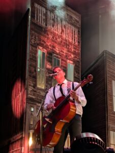 Même si les chansons sont enlevées dans la lignée du bluegrass progressif et de la country, les thèmes des chansons restent fidèles au style très narratif, sombre et cinématographique, dans la tradition des murder ballads, du folk appalachien et du western noir. « A Little Devil », entre autres, reprend le thème de l’amour non partagé et de la relation destructrice. Quant à « In Hell, I’ll Be In Good Company » qui a fini d’assoir la réputation du groupe avec plus de 356 millions de vues de son clip en 2023, elle parle de tromperie, de jalousie et de meurtre dans un style théâtral. Ce sera un des sommets du concert.