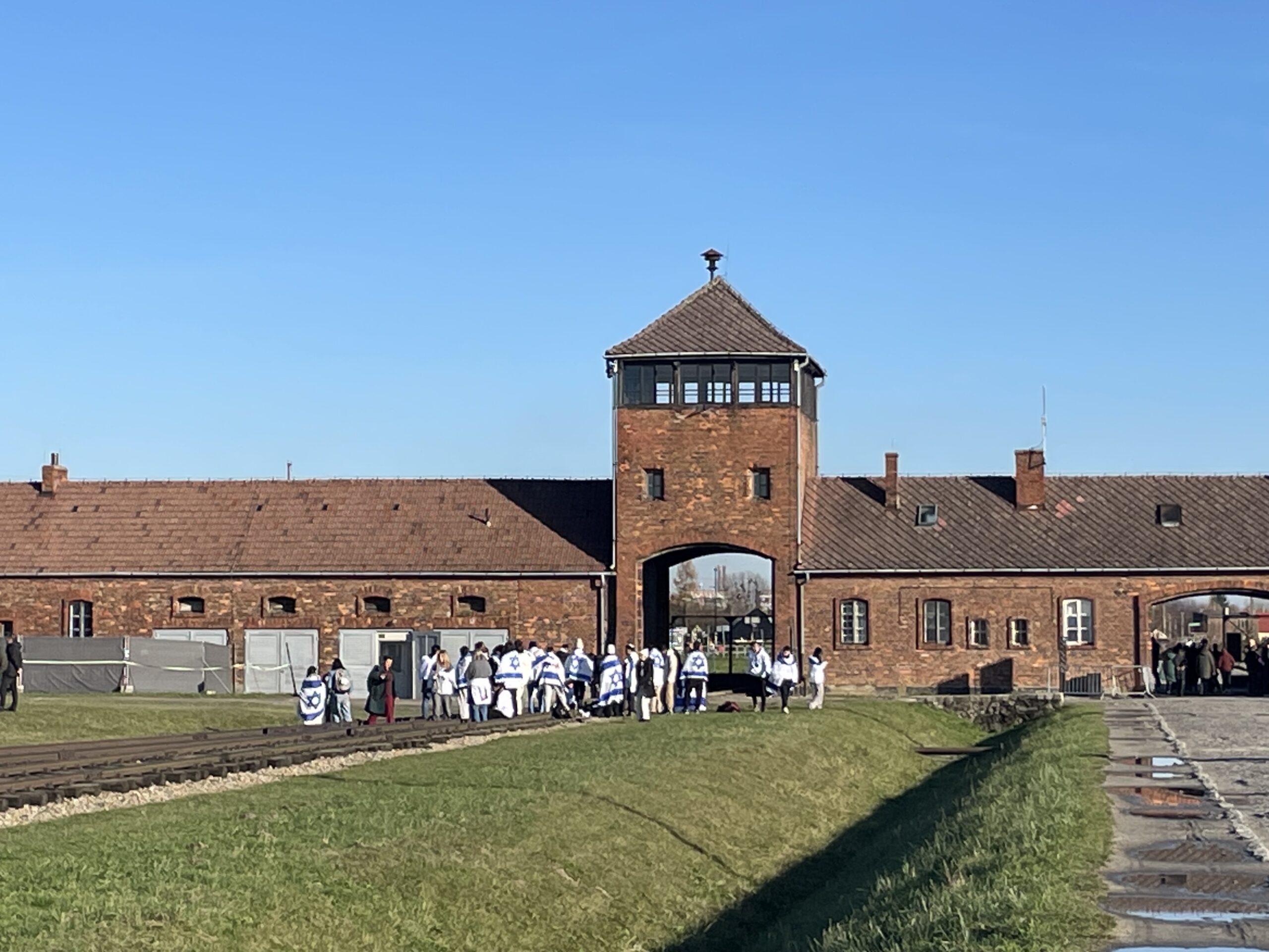 Le lendemain, les délégations ont pris un bus vers Auschwitz puis vers Birkenau, sous un soleil mince qui laissait flotter une lumière métallique sur l’immensité des camps de la mort transformés en lieux de mémoire. À Auschwitz, la visite du musée était d’une précision glaçante, rappelant que le génocide ne fut ni une folie ni un enchaînement imprévisible : c’était une administration de la mort, organisée, documentée, réfléchie. À Birkenau, c’est à chaque fois la taille du camp qui frappe. Un camp en travaux et en extension jusqu’à la fin et sa libération par les Soviétiques. Dans les allées, les délégations ont croisé des groupes d’élèves polonais et israéliens. Ils ont aussi pu essayer de mesurer l’atrocité des conditions de vie et d’extermination des déportés. Le moment le plus solennel fut la cérémonie de dépôt de fleurs introduite par une partita de violon dans un espace vide entre les quatre crématoires explosés et conservés tels quels.