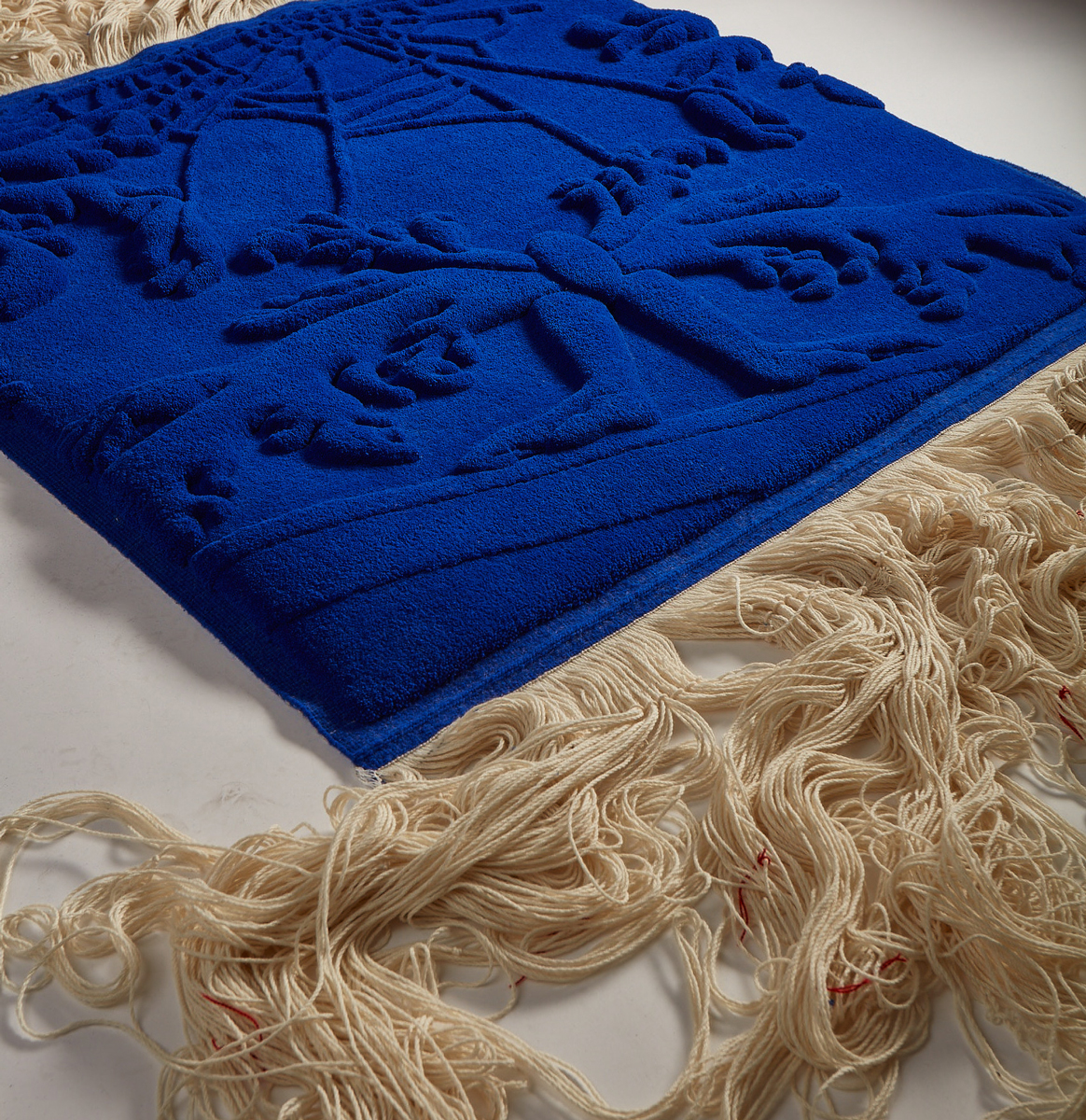 Les objets de cette collection ne perdent en rien de leur fonction. On présente des objets hybrides destinés à parer le sol ou les murs. Cette technique à l’origine est destinée à faire du tapis de sol, et même s’il y a du relief elle ne perd en rien de sa fonction, on peut la fouler, c’est fait pour, c’est très résistant. C’est une très belle technique, très noble, mais elle a aussi une fonction et on trouve ça intéressant de la garder. Après on peut répondre à d’autre applications. Par exemple les petites pièces sont mises en sculptures, mais les grandes pièces peuvent être utilisées sans problème. Nous sommes avant tout artisanes.
