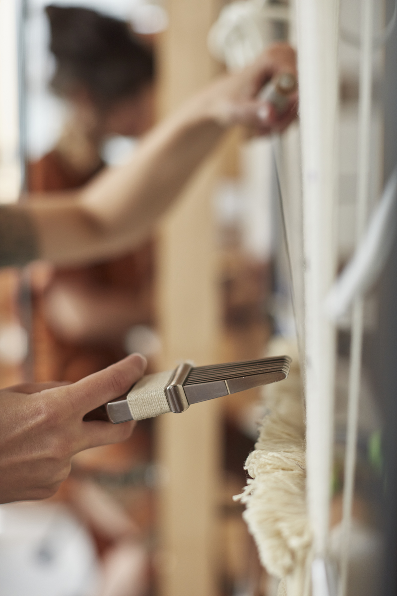 4-FONT&ROMANI tissage de Savonnerie avec peigne et broche sur métier à tisser de haute-lisse crédit Julien Weber