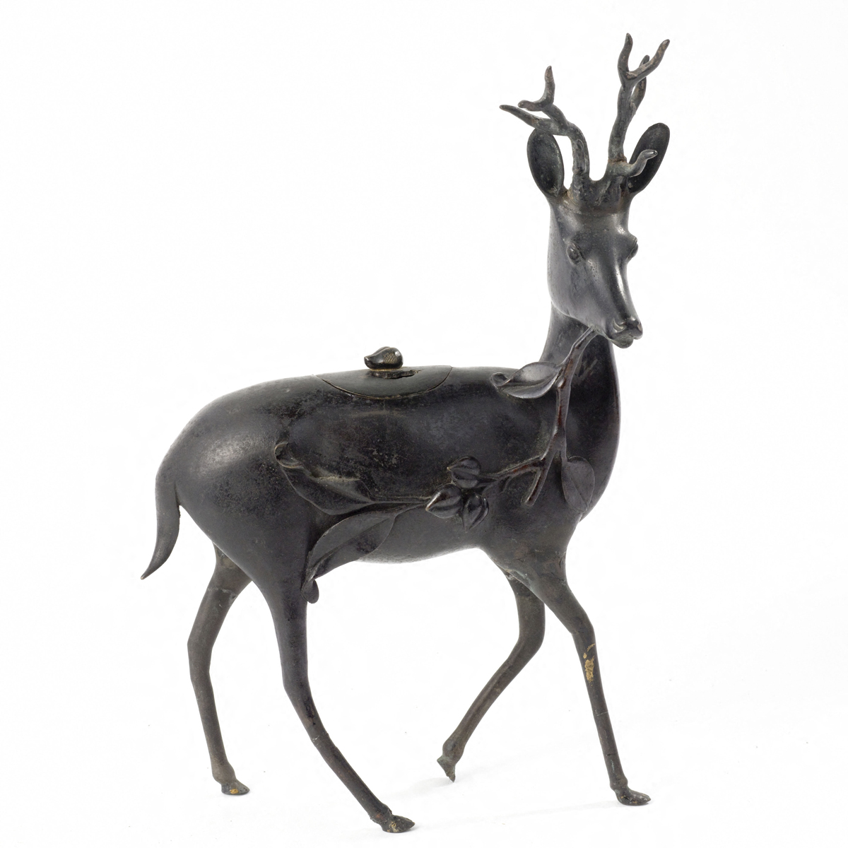 4- Brûle-parfum en forme de cerf. Époque d’Edo (1603-1868), XVIIIe-XIXe siècle, Japon. Bronze. H.32 cm ; L.21,7 cm ; P.9,2 cm. M.C. 2055. Legs Henri Cernuschi, 1896 © Paris Musées / Musée Cernuschi