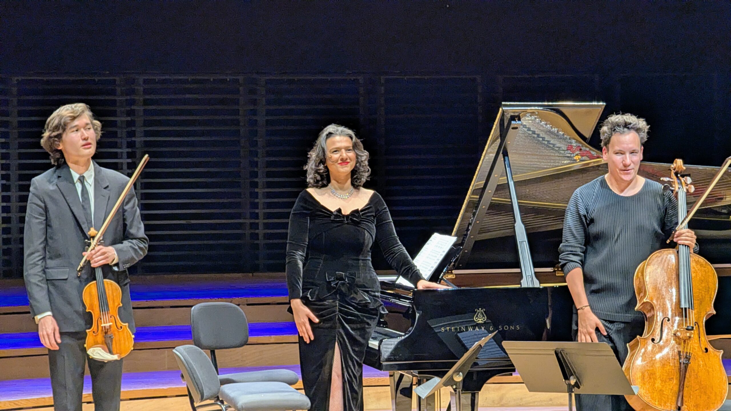 Nous pouvons accorder une mention spéciale au « Trio élégiaque n°1 » de Serge Rachmaninoff, interprété outre Khatia par Edgar Moreau et Daniel Lozakovich. Ce fut un sommet de ce concert, applaudi debout par le public. Le trio rendit parfaitement le côté contemporain de cette pièce, par la répétition du thème principal au piano puis au violoncelle et au violon.