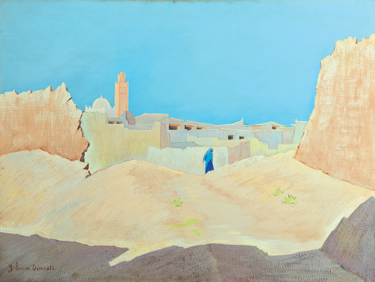 2-Geneviève Barrier-Demnati, Figuig, fille3e bleue, début d’après-midi, Maroc, ca 1926-1927. Tempera sur bois, 79 × 58 cm. Association Geneviève et Lahoussine Demnati ©Hassan El Mansourii Rabat