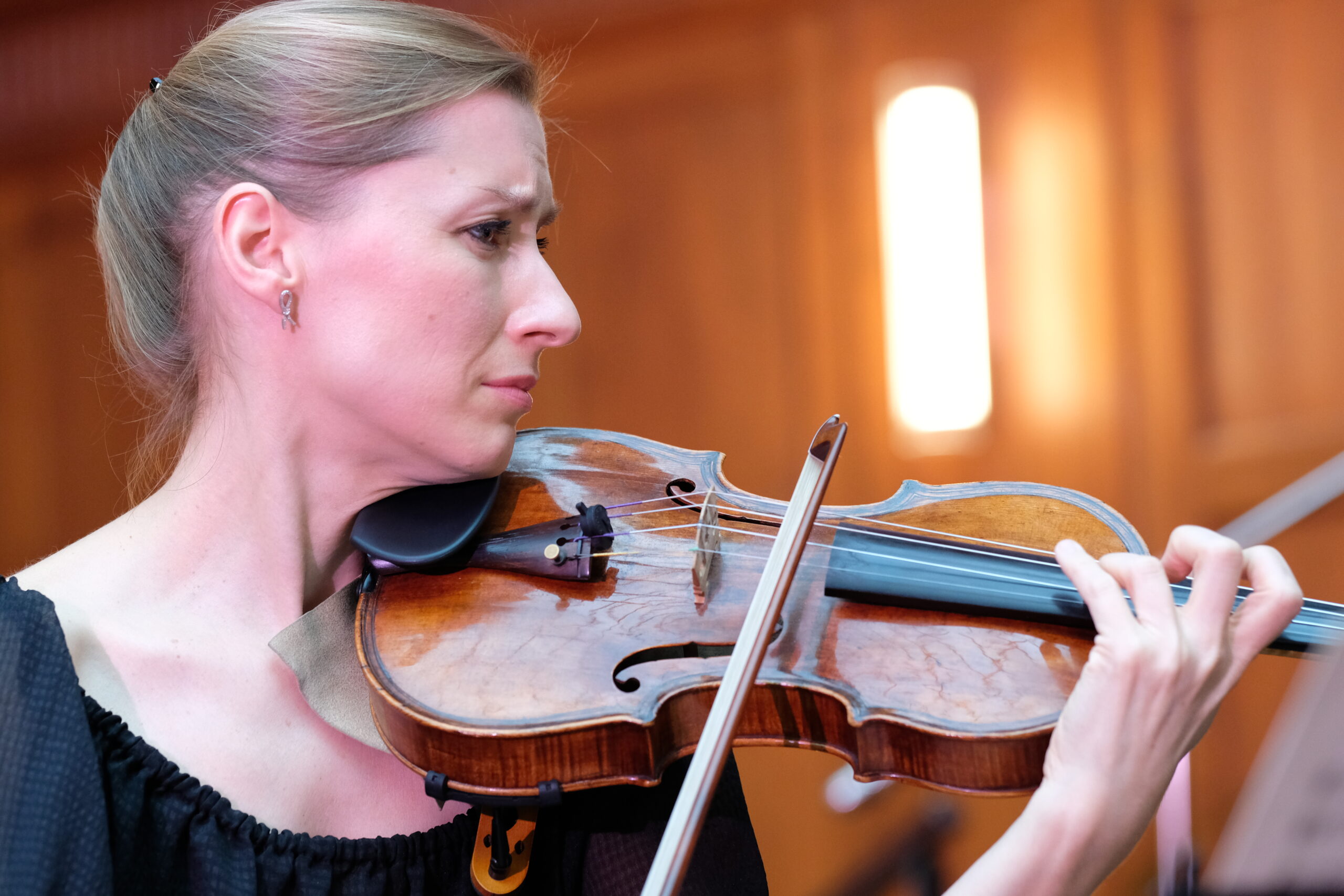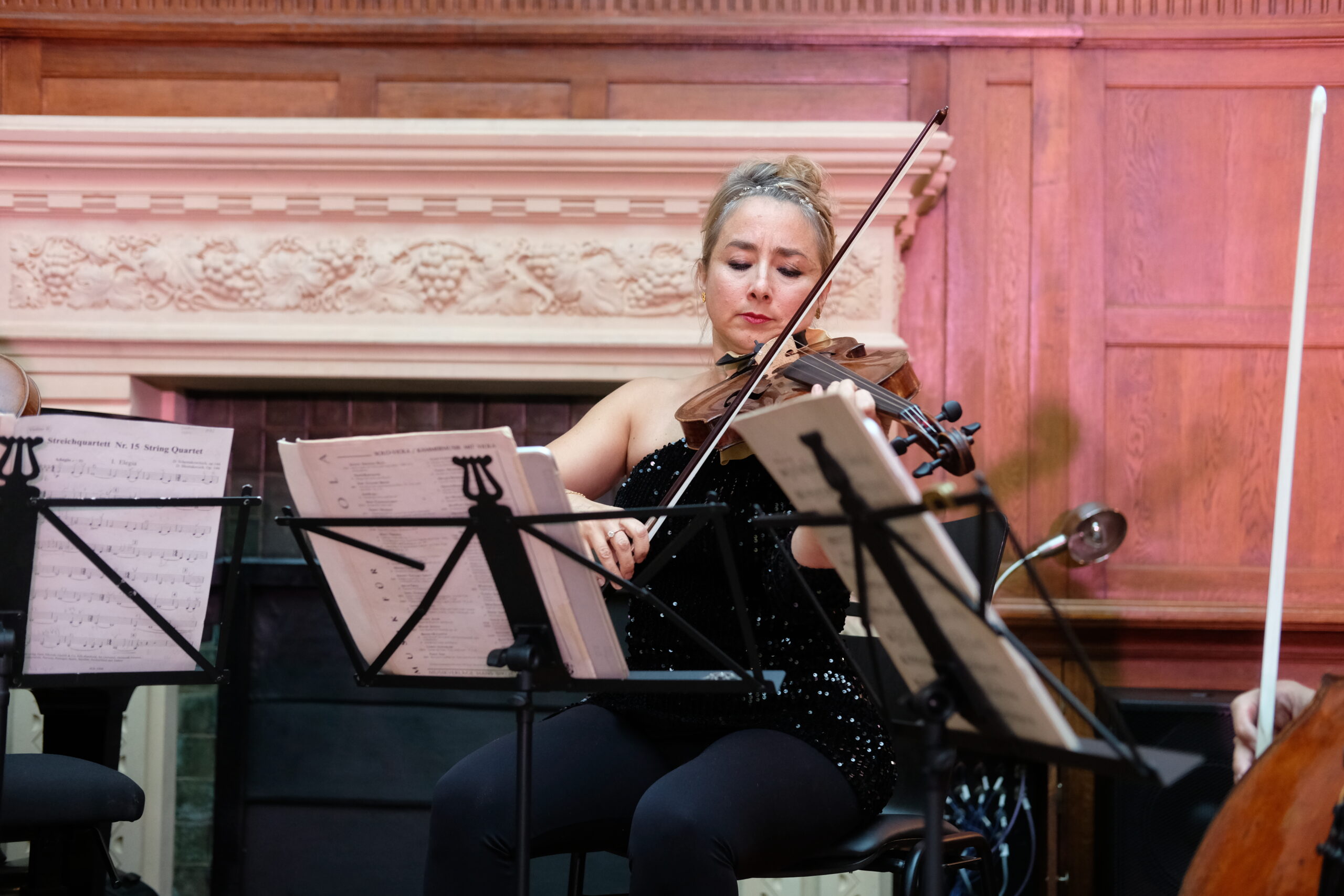 Le Quatuor Psophos est fondé en 1997 au Conservatoire National Supérieur de Musique de Lyon et lauréat de nombreux prix internationaux, parmi lesquels Osaka, Florence, Londres, mais aussi le 1er Grand Prix du Concours international de Quatuors à cordes de Bordeaux, la sélection par la prestigieuse New Generation Artist de la BBC et la nomination aux Victoires de la musique. Mathilde Borsarello Herrmann (premier violon), Bleuenn Le Maitre (deuxième violon), Cécile Grassi (alto) et Guillaume Martigné (violoncelle) ont attaqué l’Élégie avec beaucoup d’émotion et un son profond et enveloppant. Évoquant la finalité de toute chose, les musiciens invitent les auditeurs – non pas à quitter la salle par ennui, loin de là ! – mais à plonger dans la contemplation dans une ambiance de tristesse sans angoisse et d’adieux sans regrets.