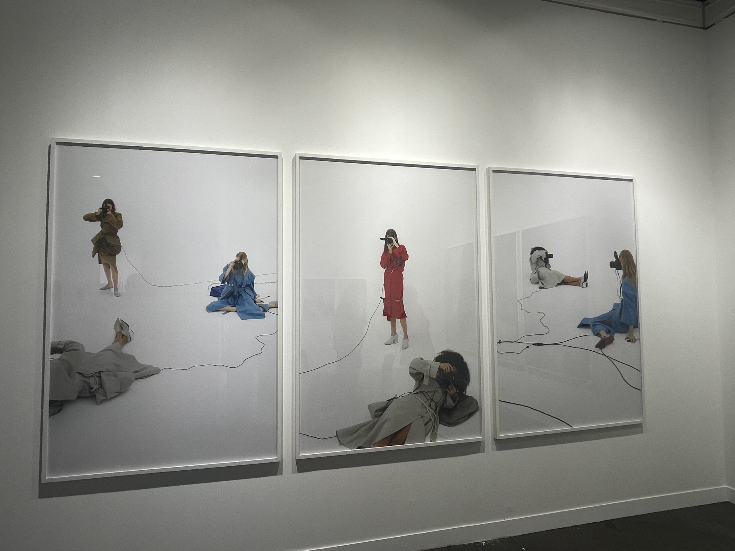 Si le digital est très présent avec un secteur digital fort et varié (tirages, sculptures, NFT) sous la houlette de Nina Roehrs, le projet Paris Photo Online Viewing Rooms et des QR codes sur les murs de nombreuses galeries, les œuvres présentes physiquement sont très grandes, très colorées et très matérielles. Il y a bien sûr les grandes stars avec des galeries comme Polka, Fahey /Klein avec ses Agnès Varda, Diane Arbus ou Nan Goldin chez Fraenkel, mais l’on découvre aussi aussi les artistes de la galerie Lumière des Roses (Montreuil) ou les Ouka Leele de Rocio Santa Cruz (Barcelona). Notre coup de cœur ? Le saisissant Monde forclos de Laurent Montaron chez Anne-Sarah Bénichou. Les tendances sont à la photographie de villes, aux détournements post-surréalistes des corps, aux portraits « sapés » d’influence africaine et à certaines photos passéistes qui tentent de rendre l’atmosphère de tableaux de grands maîtres.