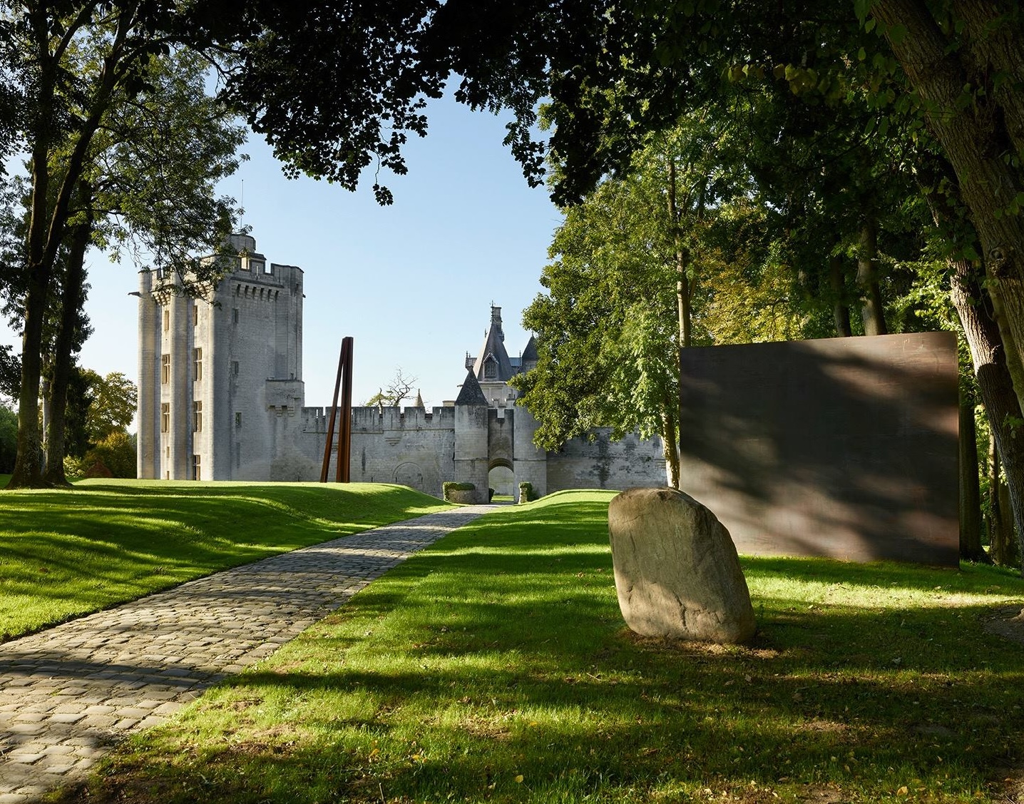 Près de vingt sculptures sont réparties dans les salles et les jardins du Donjon. Certaines monumentales, dialoguent avec la nature environnante. D’autres investissent les salles historiques du château, créant une tension féconde entre la matière ancienne et les formes modernes.