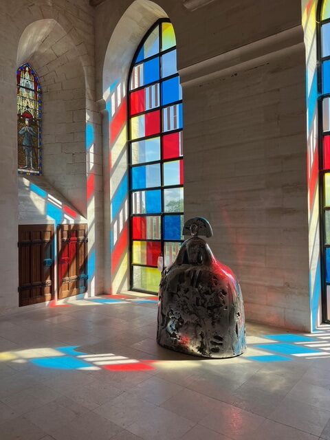 À l’intérieur, la chapelle, ses vitraux consacrés à Simon de Vez et sa crypte gallo-romaine, côtoient des tombeaux, fonts baptismaux, oratoire, et même une salle à l’armature métallique signée Gustave Eiffel. À l’extérieur, le jardin médiéval labellisé « Jardin remarquable », conçu par Stéphane Ducoux, accueille des œuvres de Bourdelle et offre un cadre paisible aux sculptures de Couturier. Ce dialogue entre patrimoine et création contemporaine est une signature forte du lieu, qui accueille aussi d’autres artistes comme Tadashi Kawamata ou Lee Ufan.