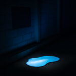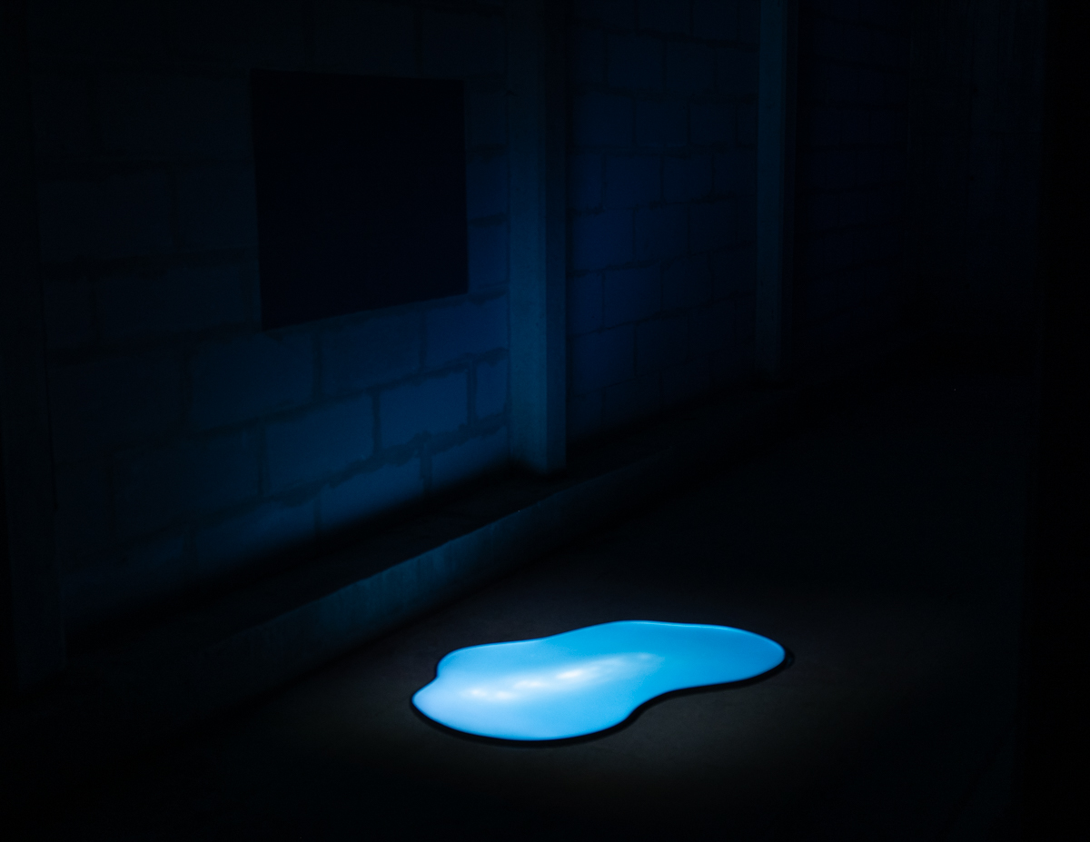 Avec les bas-reliefs fossiles, puis l’immense installation phosphorescente d’Ugo Schiavi, on tombe dans un grand trou noir que forment les « zone de minuit ». Et même, on s’y perd. On s’y heurte à des formes marine phosphorescentes, qui semblent être de grandes sirènes que notre surexploitation des fonds marins et nos déchets semblent empêcher de vibrer. Avec « ANT-2200 », Jérémie Brugidou réunit les participant.e.s autour d’une sculpture qui est aussi fontaine phosphorescente et interactive. Plus la visite avance, plus on a l’impression que ces territoires très éloignés des profondeurs marines recréent un système de planètes bioluminescentes en mouvement, auquel nous sommes invités à participer, de manière privilégiée et exceptionnelle.