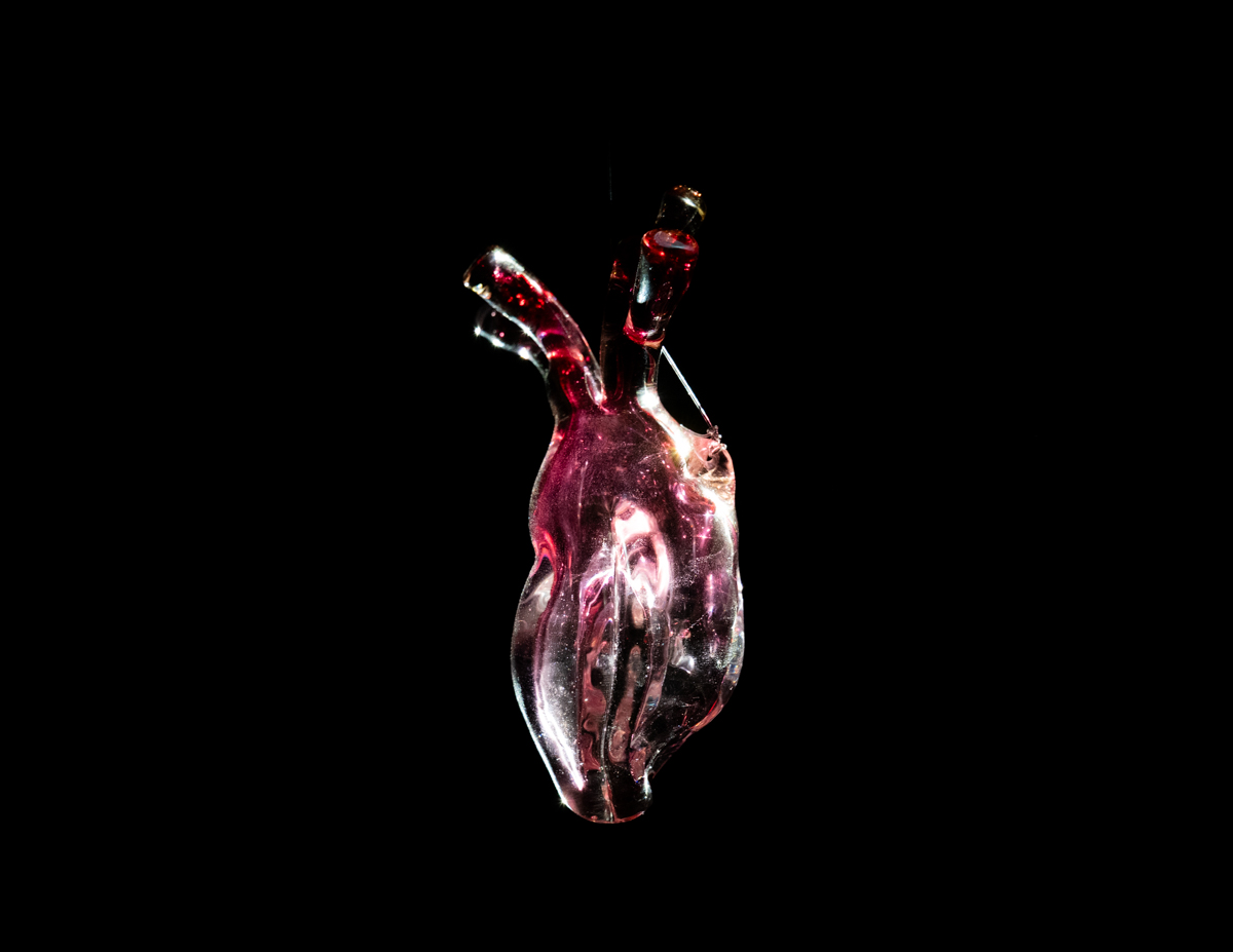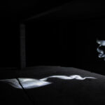 En chemin, nous croisons la phosphorescence des êtres vivants qui peuplent ces abysses et que nous menaçons avec nos pêches extensives et les recherches de minerais précieux pour nos smartphones. Tout commence par un miroir et un reflet chez Antoine Bertin. L’œuvre s’intitule Métabolites et s’inspire des « blooms » de phytoplancton; elle met en avant le scintillement que produisent les molécules chimiques qui permettent à ces êtres vivants de communiquer. L’artiste propose également de prendre le temps d’écouter et de voir le battement du cœur d’un poisson, dans une installation très aboutie, entre physicalité et onirisme, ombre et couleur.