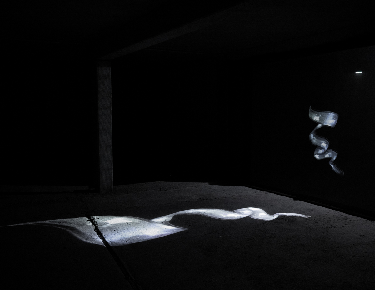 Imaginée par Lauranne Germond et Sara Dufour de l’association Coal dans le cadre de la saison qu’elles ont ont pensée pour Les Extatiques, l’exposition Sous l’horizon investit la Salle des Colonnes de la Défense, une salle de 1000 m2 qui est cachée sous la Grande Arche et qui est généralement inaccessible. La proposition faite aux visiteurs et visiteuses est de faire l’expérience des abysses. Cela passe par beaucoup d’obscurité, une reconnection avec la mer et le travail visuel de plasticiens sur des zones réputées inaccessibles au commun des mortels. Nous engageons une longue plongée en apnée et dans le noir vers la « zone de minuit », à plus de 1 000 mètres sous la surface, que n’atteignent pas les rayons du soleil. Sauf qu’en se laissant porter par les oeuvres exposées, on apprend que les corps vivants qui peuplent cette zone sont phosphorescents depuis la nuit des temps…