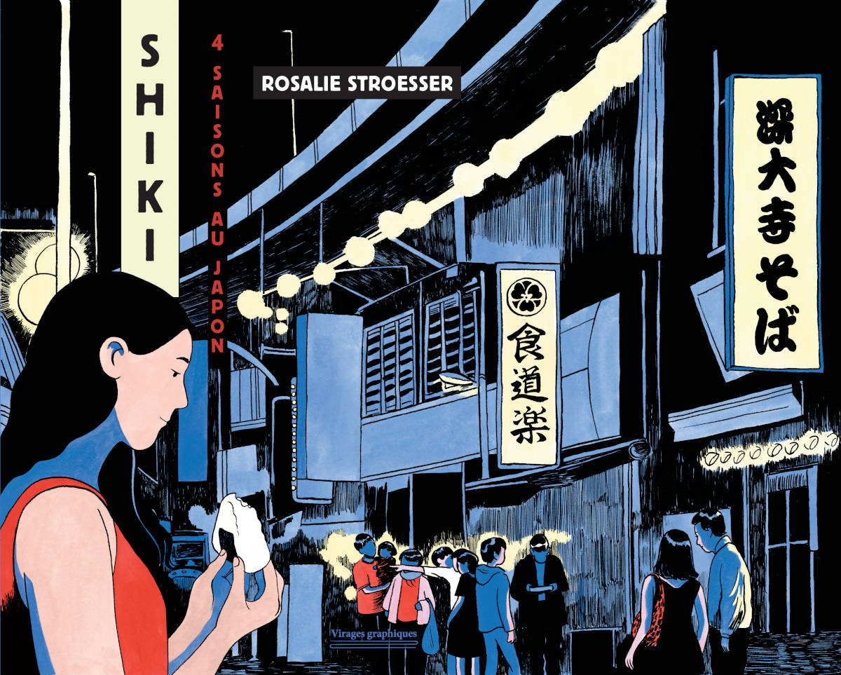 Parmi les trois expositions proposées sur un temps un peu plus long que celui du festival, notons Shiki : 4 saisons au Japon à la médiathèque Jean Falala, dont les grandes baies vitrées donnent sur la cathédrale. On y découvre les planches originales de la BD éponyme de Rosalie Stroesser, qui a reçu le Prix BD Fnac France Inter 2024. Dans un noir et blanc très graphique, on suit la narratrice dans ses déambulations japonaises sans paroles presque méditatives, accompagnées de quelques planches mises en couleur à la gouache.