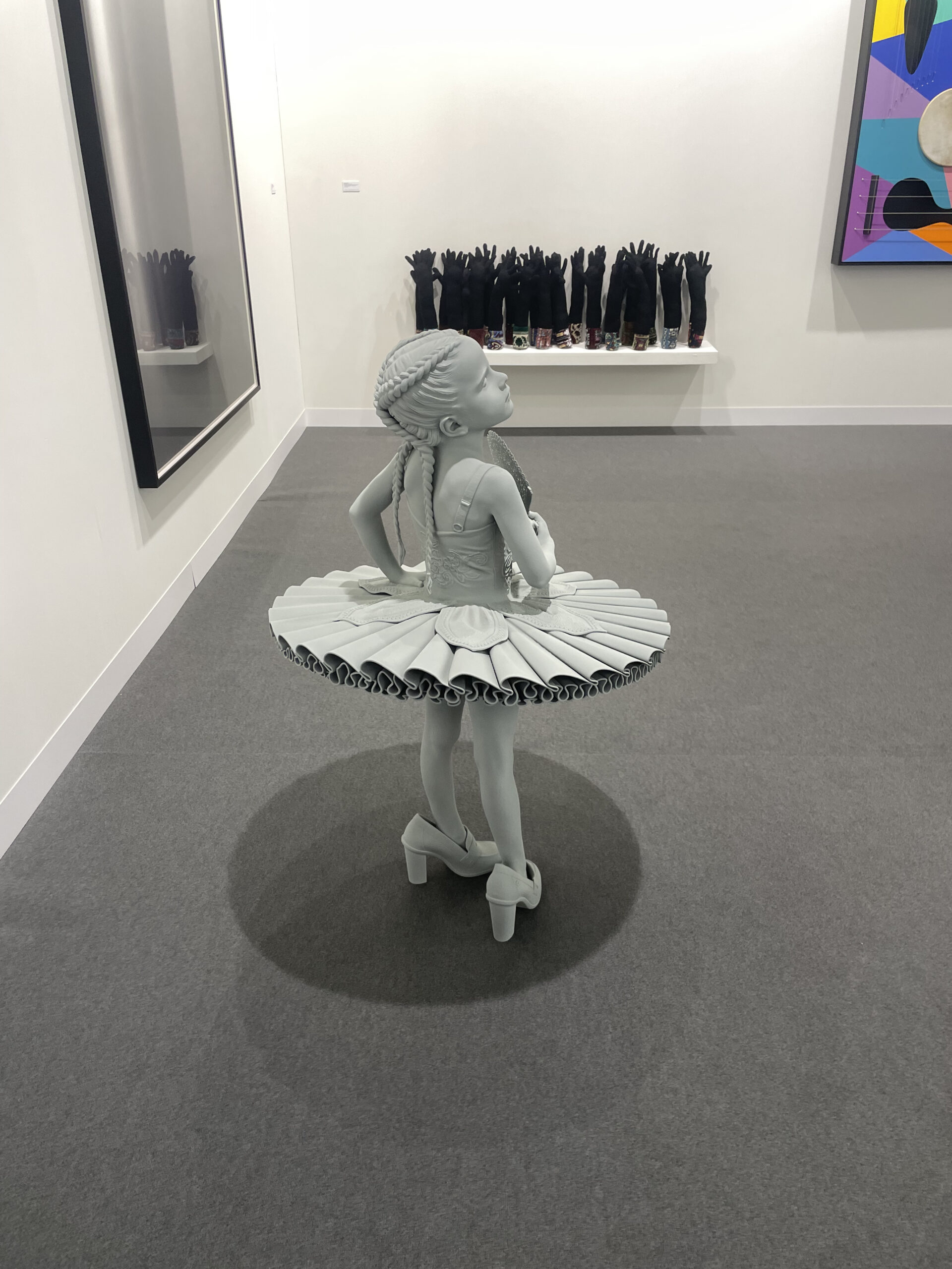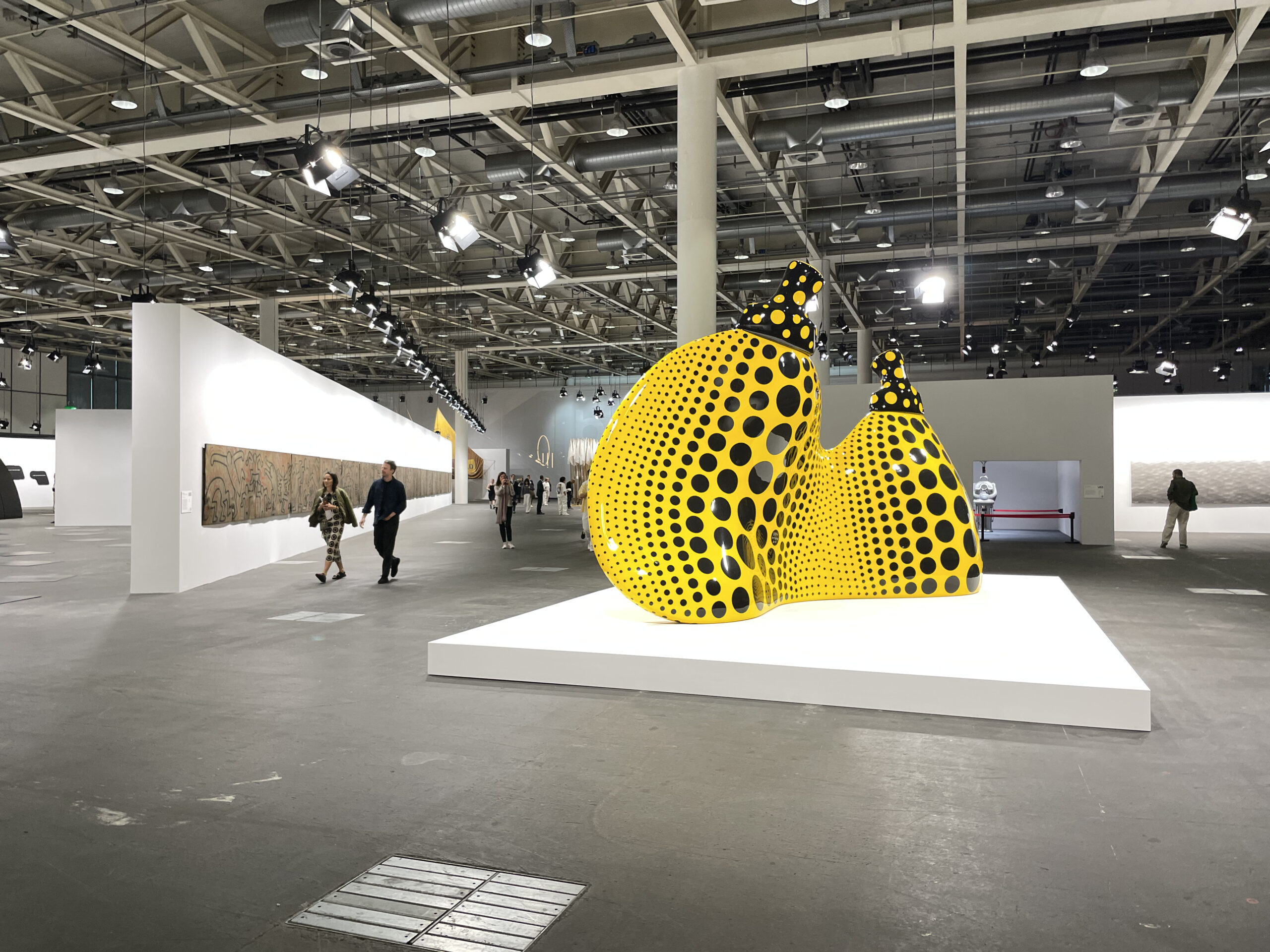 Les artistes les plus représenté.e.s de la foire sont peut-être le photographe Thomas Schütte et la plasticienne Yayoi Kusama, témoignant d’un intérêt pour la photographie et la sculpture : le Donald de Paul McCarthy est massif et rouge chez Xavier Hufkens, les humains de Stephan Balkenhol ont les cheveux fondus et les couleurs, elles sont fortes, avec volontiers des références aux maîtres anciens quand il y a des toiles (aussi bien le pastiche de Rubens par Robert Longo chez Ropac, que la toile interminable de Dominique Fung dans la section «Unlimited»). C’est coloré mais pas trop pop (sauf dans quelques galeries comme Amine Rech), assez texturé et un brin expressionniste.
