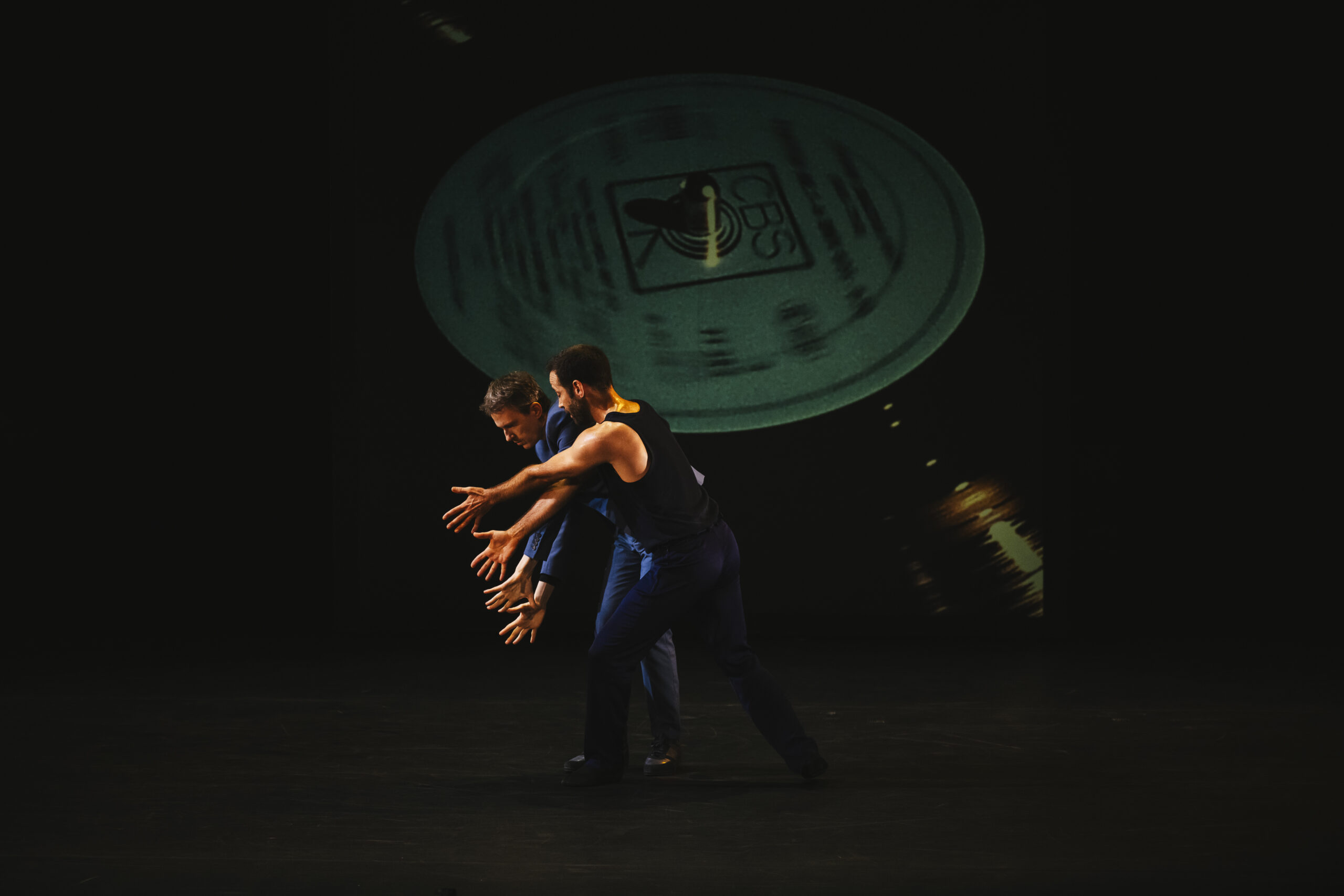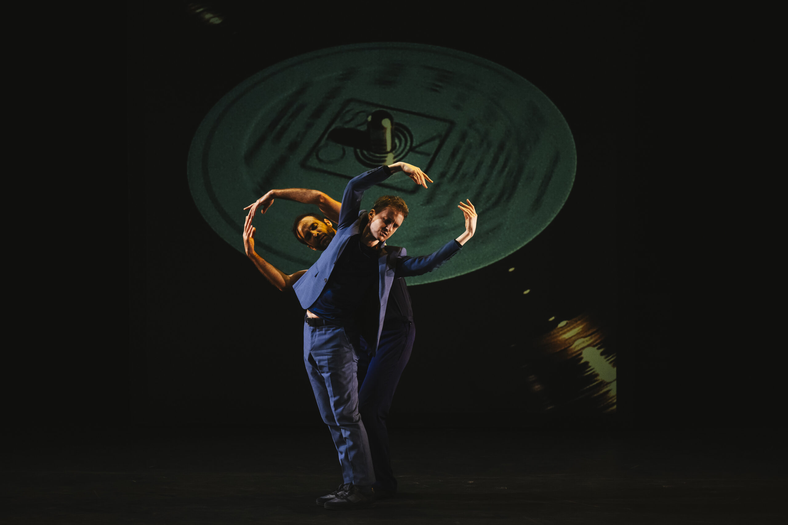 Néanmoins, l’un et l’autre nous font partager un rêve de jeunesse éternelle à travers l’endurance physique évidente que demande Unstill Life. Il y a peu de pauses et elles sont marquées. Millepied refuse de suivre le rythme fou des doigts de Tharaud dans Bach et/ou se pose sur son tabouret ou contre son piano. Et Tharaud sort un 33 tours de sa pochette qui tourne sur l’écran devant nous pour lui permettre, lui aussi, de traverser la scène. A 54 ans, très tendrement chorégraphié par son complice, il se lance et se met à danser. Il y a à la fois de la complicité et de l’humour dans leurs pas de deux. Et en effet, chacun fait avec son corps. Il y a aussi la planante et surréaliste expérience du double et un moment de trouble qui est l’acmé du spectacle.