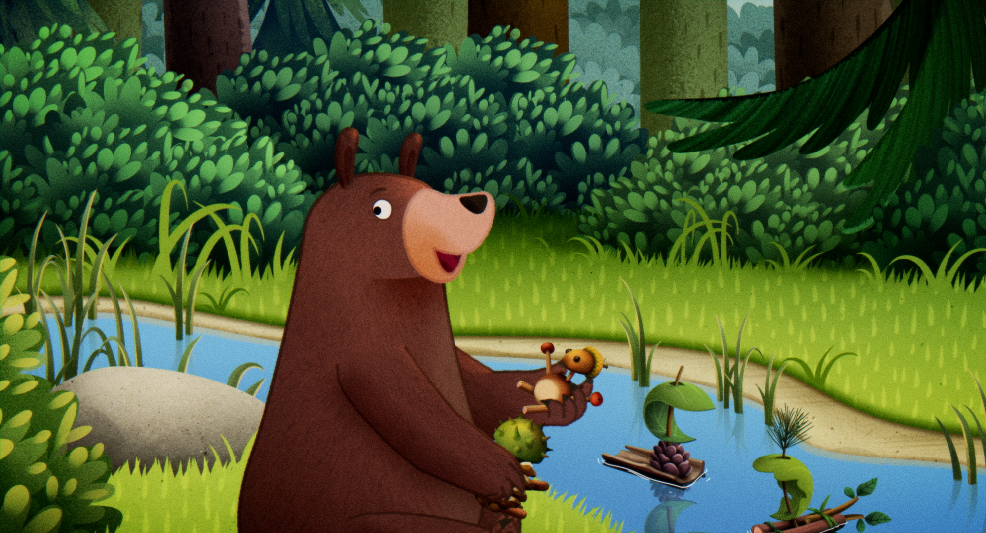 Dès le générique où l’oeil embrasse les forme rondes et rassurantes de la forêt sur une ode aux câlins, l’ambiance est à la douceur. A mille lieues des orphelins terribles et des cendrillons défavorisées, La Course au miel raconte l’histoire d’un fils qui est adoré par son père. Tout est réconfortant dans ce film aux lignes pures, où la quête du miel fonctionne comme un massage coloré et agréable aux tout petits comme aux parents. La réalisatrice polonaise Anna Blaszczyk explique que le plus grand challenge du film a été de captiver des petits tout le long de l’heure dix d’aventures. Et ça marche : pas besoin de requin ou de vaisseau spatial pour baigner le regard des 2-5 ans d’amour et de couleurs. Le feel-good moovie des tout-petits !