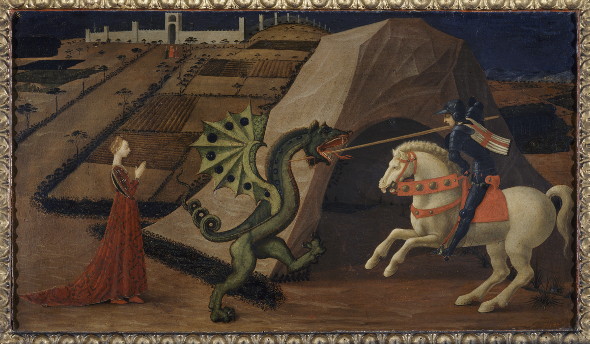 2- Saint Georges combattant le dragon, Paolo Uccello – Vers 1140, Tempera sur bois – Institut de France, Musée Jacquemart-André, Paris © RMN-Grand Palais