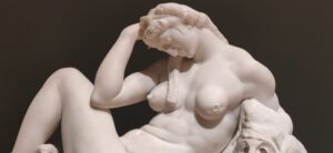 Nous sommes plusieur.es à rester fasciné.es par la posture lascive de l’Esclave mourant, par la grâce de sa main repliée sur son torse et par la courbe de son cou à la tête légèrement rejetée en arrière. Abandonnée aux regards, la statue s’offre aux crayons de celles et ceux qui tentent vainement une esquisse de ce corps exalté, presque vivant.