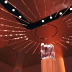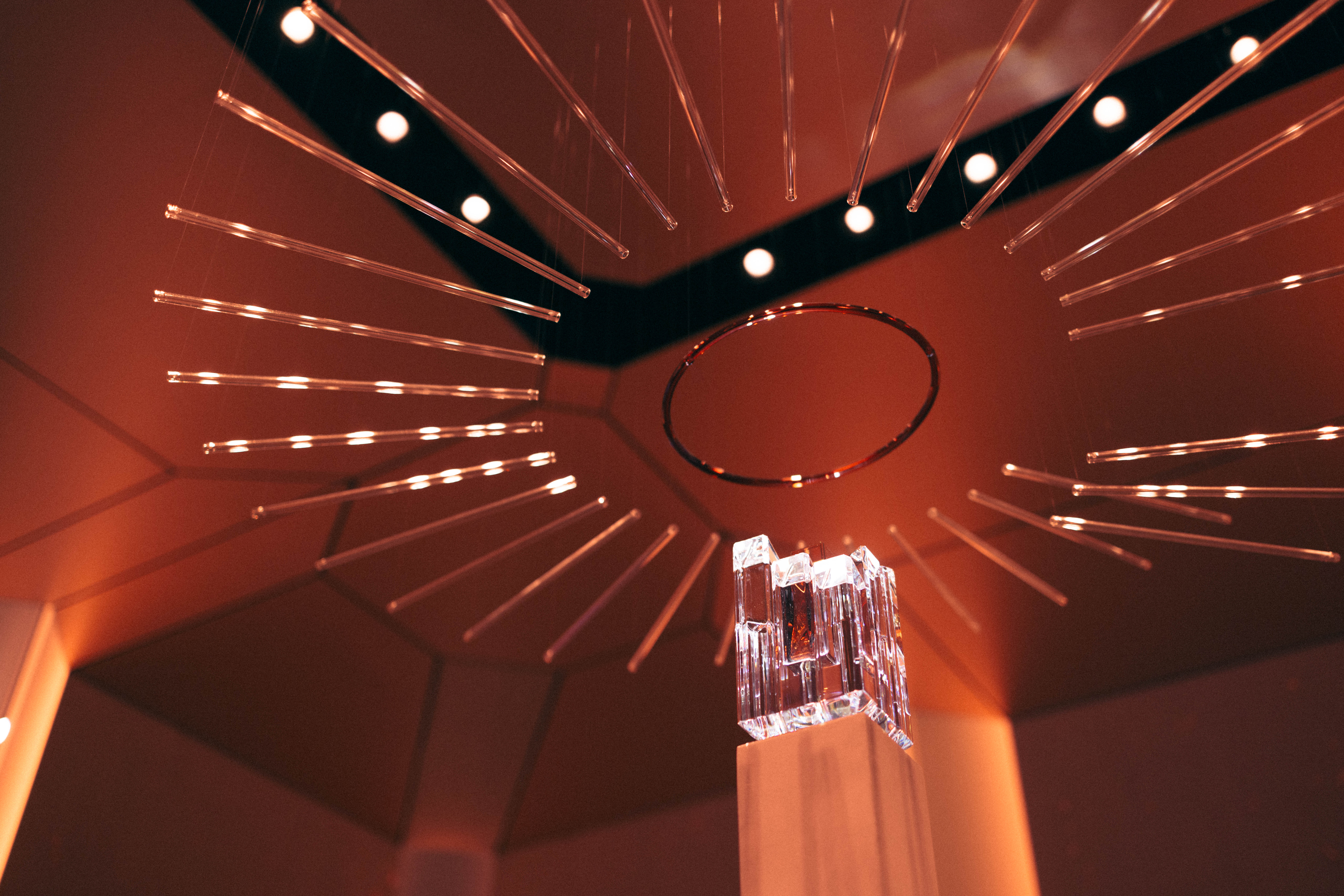 Le parcours culmine dans une explosion sensorielle autour du parfum créé pour Baccarat et à laquelle participe Anne-Sophie Pic. La pâtissière a créé des chocolats au cœur chaud qui diffusent leurs arômes en harmonie avec les parfums de Kurkdjian – la gourmandise comme art total. La scénographie de Cyril Teste déploie autour de cette collaboration une mise en scène spectaculaire jouant du rouge, de l’or et du cristal. Au centre l’installation qui imite le cristal nous fait littéralement entrer dans un lingot d’or. La musique enveloppe l’espace transformant la dégustation en performance synesthésique.