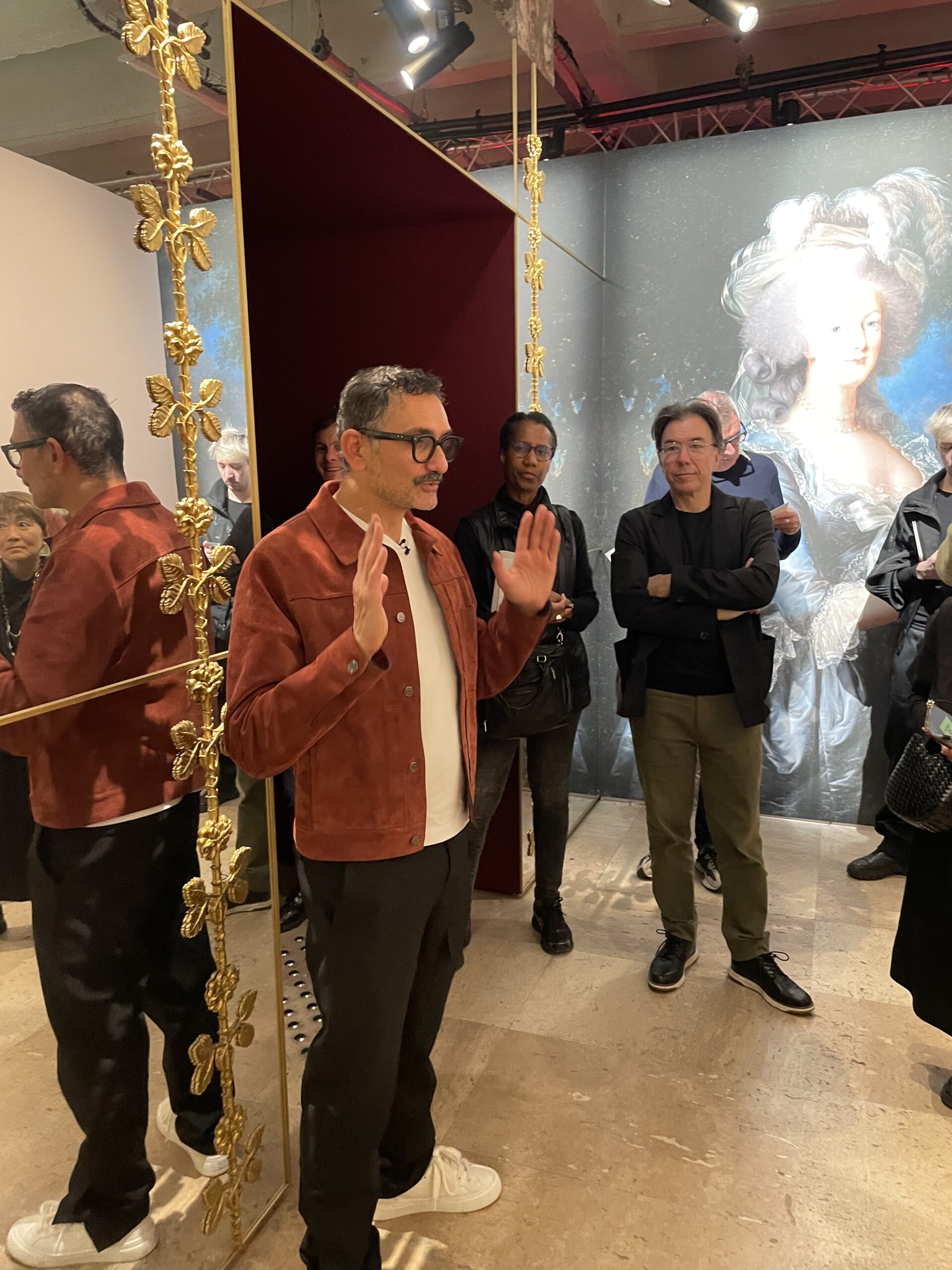 L’installation dialogue avec « À la rose », le parfum créé en 2014 pour la collection « Voir et être vu ». Plus loin, c’est la rencontre avec la rose que Marie-Antoinette tient dans son portrait par Élisabeth Vigée Le Brun et qui devient le fil conducteur d’une méditation sur la royauté, la féminité et le pouvoir de séduction.