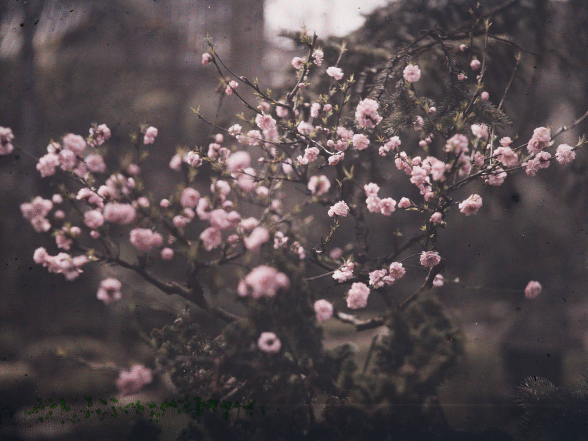 5- Prunus à fleurs roses dans le village japonais, propriété d’Albert Kahn à Boulogne – Opérateur non identifié, Sans date, Autochrome © CD 92 / Musée départemental Albert-Kahn