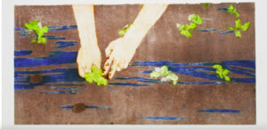 & faire sa colle de riz pour maroufler, avec un large pinceau, ses gravures imprimées sur papier chinois délicat sur un papier plus épais. Colle d’amidon extrêmement résistante (qui entre dans la composition du 3 mortier traditionnel chinois), elle est à la fois flexible et rigide, fixe les couleurs et protège les œuvres du temps, quand bien même le collage est réversible.