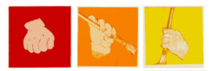 Christine a pris des cours de calligraphie, avant de faire du yoga. Délier le poignet ; tout dans le geste. Lors de notre résidence en 2014 à Saint-Gratien pour le dispositif « inventaires » (un artiste est invité chaque année, depuis 2005, à poser son regard sur la commune, son environnement, ses permanences et changements, ses habitants ou encore son habitat…), Christine s’intéresse aux gestes à travers les mains des travailleurs. Comment les gestes accompagnent leur savoir-faire et leur parole, disent les gens. Christine aussi travaille avec ses mains : faire de la peinture ou de la gravure, c’est un travail autant manuel qu’intellectuel.