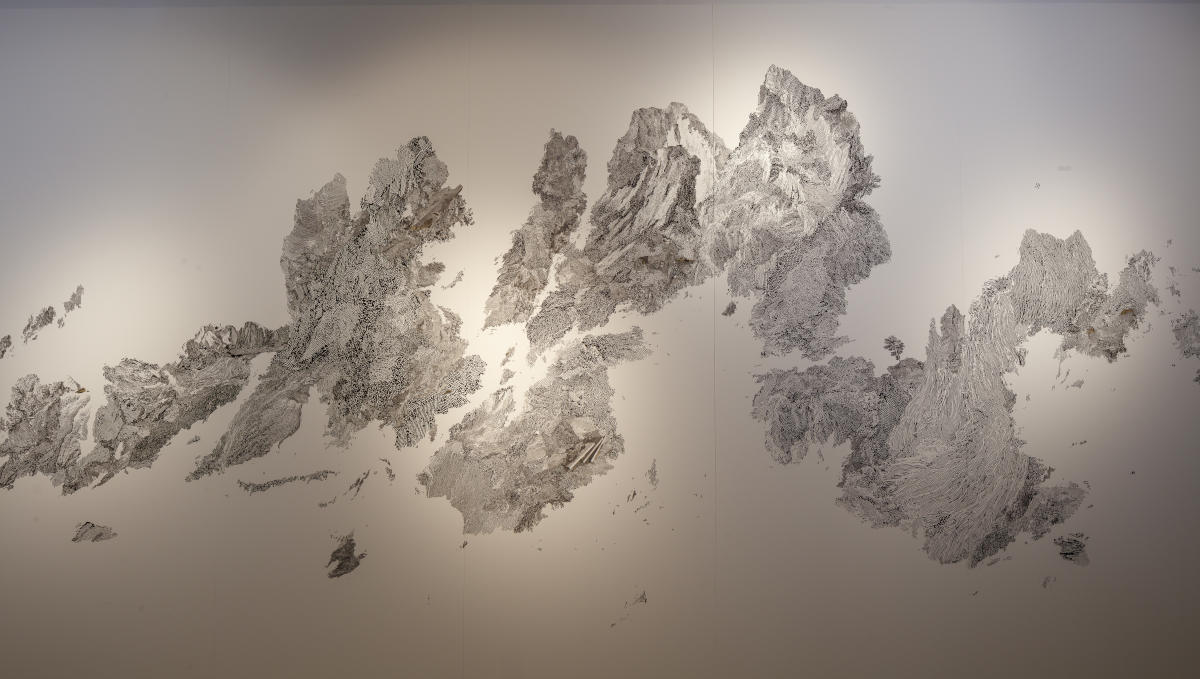 Dans la grande exposition consacrée à Fabienne Verdier, le lien à la nature s’exprime de façon plus abstraite, plus spirituelle. Inspirée de la peinture traditionnelle chinoise, elle transcrit dans ses lignes les mouvements de l’univers, jusqu’à utiliser la force de la gravité associée à son geste pour créer la matière même de sa ligne. Ainsi, l’œuvre est le résultat de la combinaison de plusieurs forces.