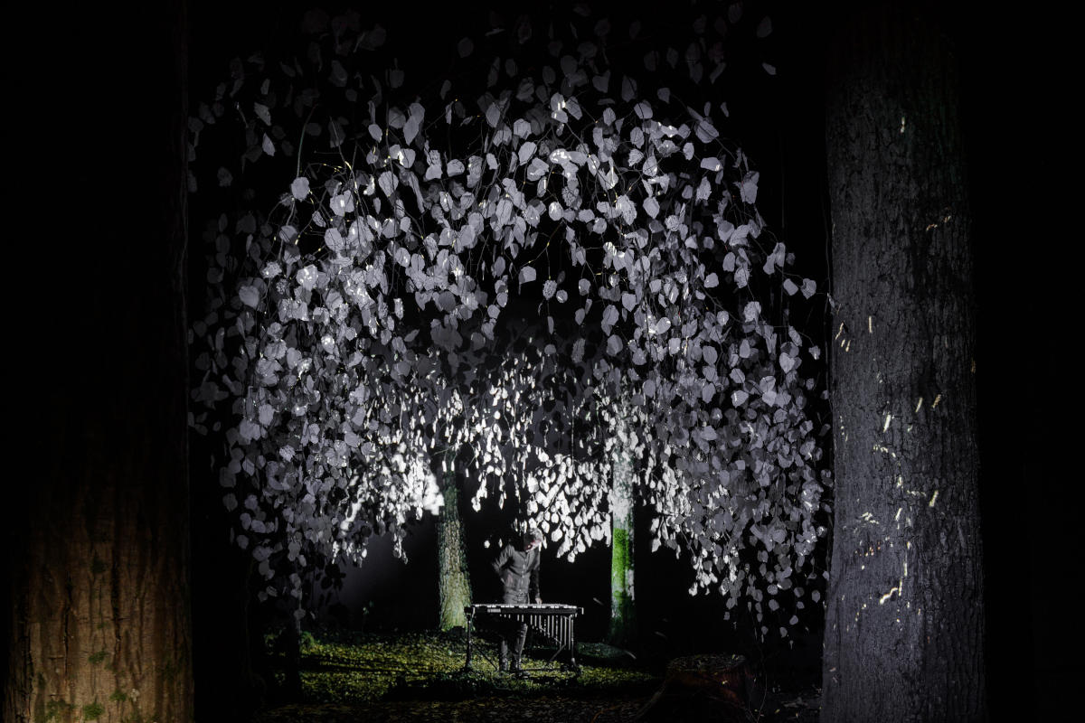 Le duo G&K, accompagné du studio Isotone, a la nature à la fois comme sujet, comme matière première et comme matrice de leur création. Immergés dans la forêt primaire de Bialowieza en Pologne, ils retranscrivent leur espoir d’une cohabitation harmonieuse de toutes les facettes du vivant comme c’est le cas dans cette unique forêt primaire d’Europe. Avec leur installation hypnotique, les forces de la nature semblent s’allier dans un flux mouvant et fragile.