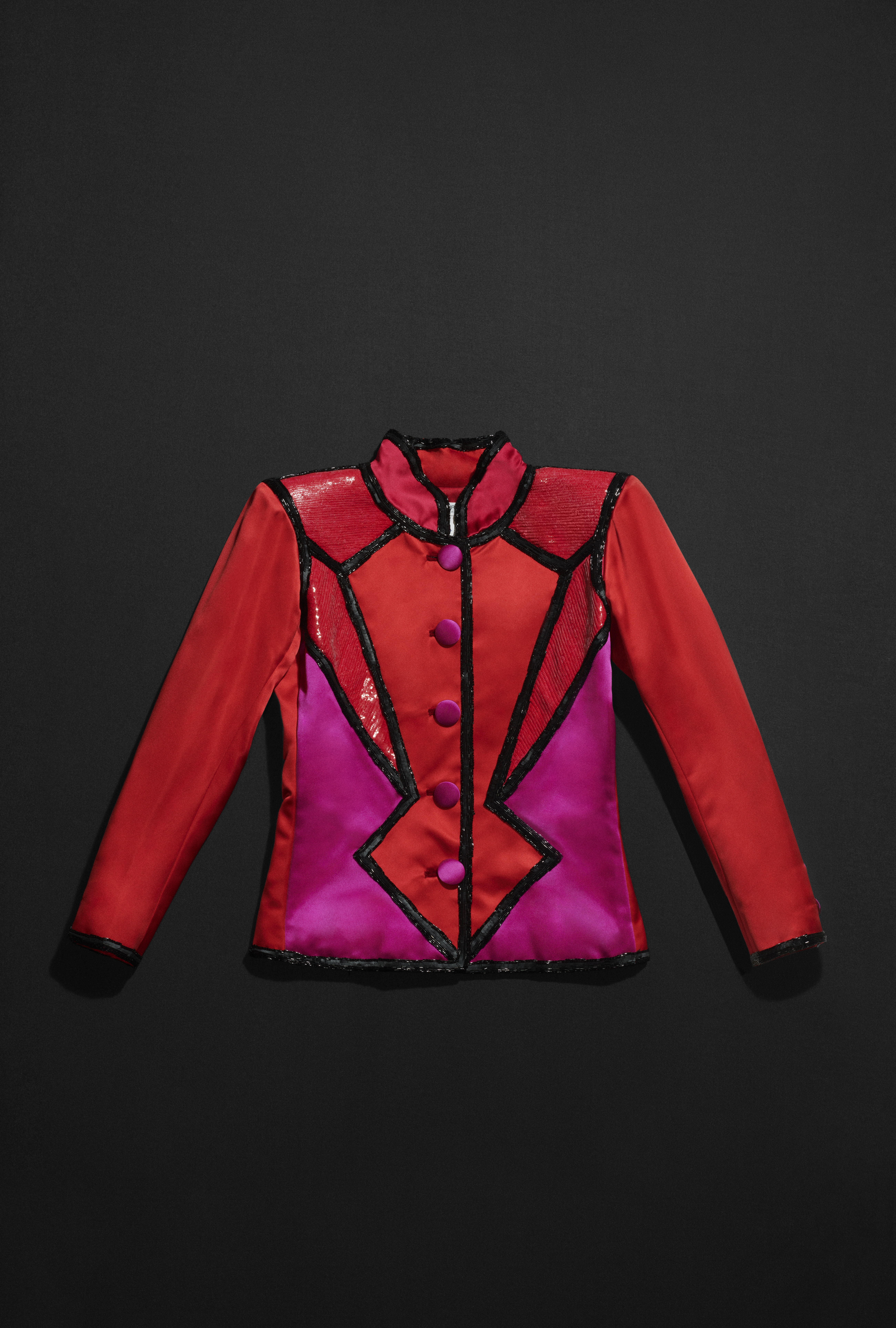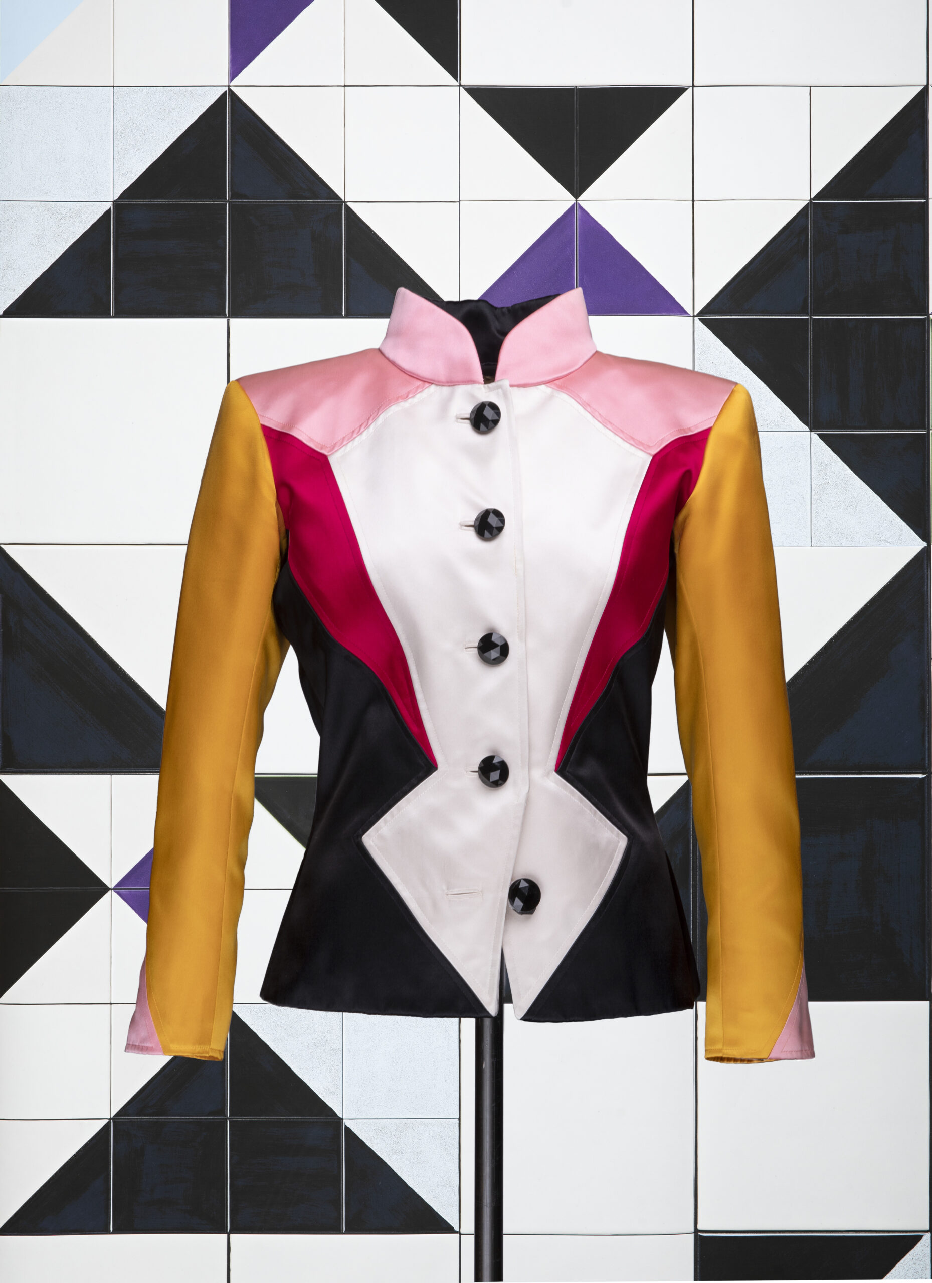 Cette dernière partie s’ouvre sur une pièce sensationnelle de la collection automne-hiver Yves Saint-Laurent Rive Gauche 1988, symbolisant le syncrétisme de l’ensemble des sujets traités dans cette exposition : la ligne, la forme et la couleur y sont tout à la fois à l’honneur. Le clou du spectacle donc avec cette série de tailleurs ressemblant à des vitraux.