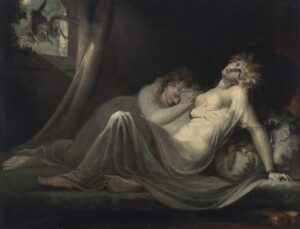 Johann Heinrich Füssli, L’Incube s’envolant, laissant deux jeunes femmes