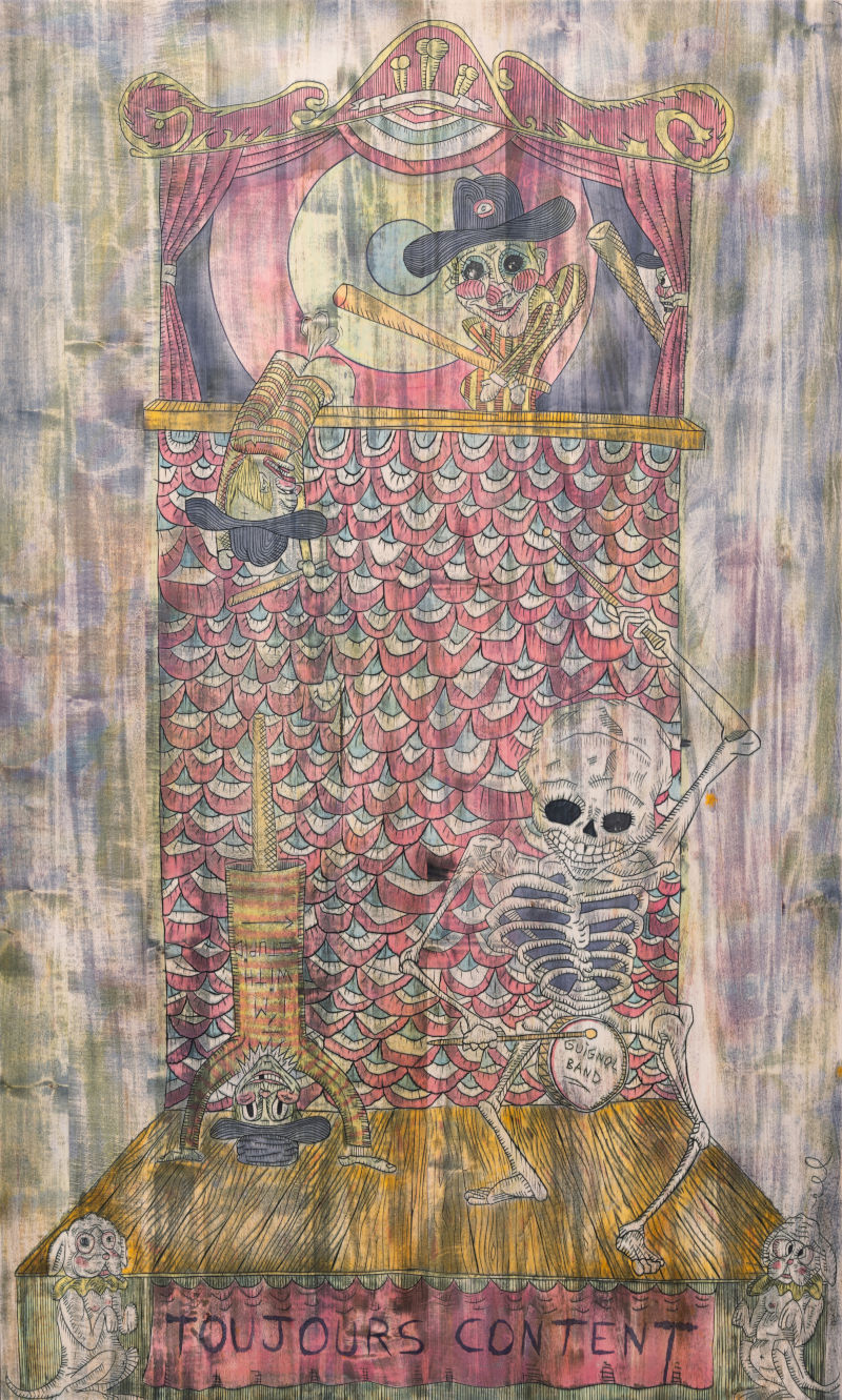 3- Mathis Collins, Artiste policier et le Guignol’s Band, 2020 – Bois de tilleul sculpté, teinte à bois 201,5 x 121,7 x 5 cm – Collection Frac Île-de-France © droits réservés