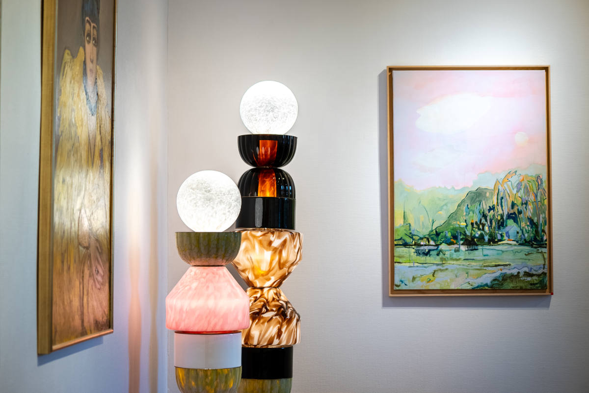Les artistes historiques inspirent les jeunes et les jeunes font ressortir la modernité de leurs ainées, et nous suivons les liens et les correspondances entre les couleurs des toiles de Margaux Desombre et celles de Jacqueline Marval, entre les formes géométriques des canevas de Rose Granoff et les totems de verre soufflé de Marie-Victoire Winckler. Peinture, photographie, sculpture, design, broderie et arts graphiques cohabitent et offrent un aperçu du goût, de la passion de Katia Granoff pour l’art et des nécessaires force de caractère et indépendance d’esprit dont elle a dû faire preuve au long de sa vie. Et les artistes ne s’y sont pas trompés : elle fut un vrai modèle.