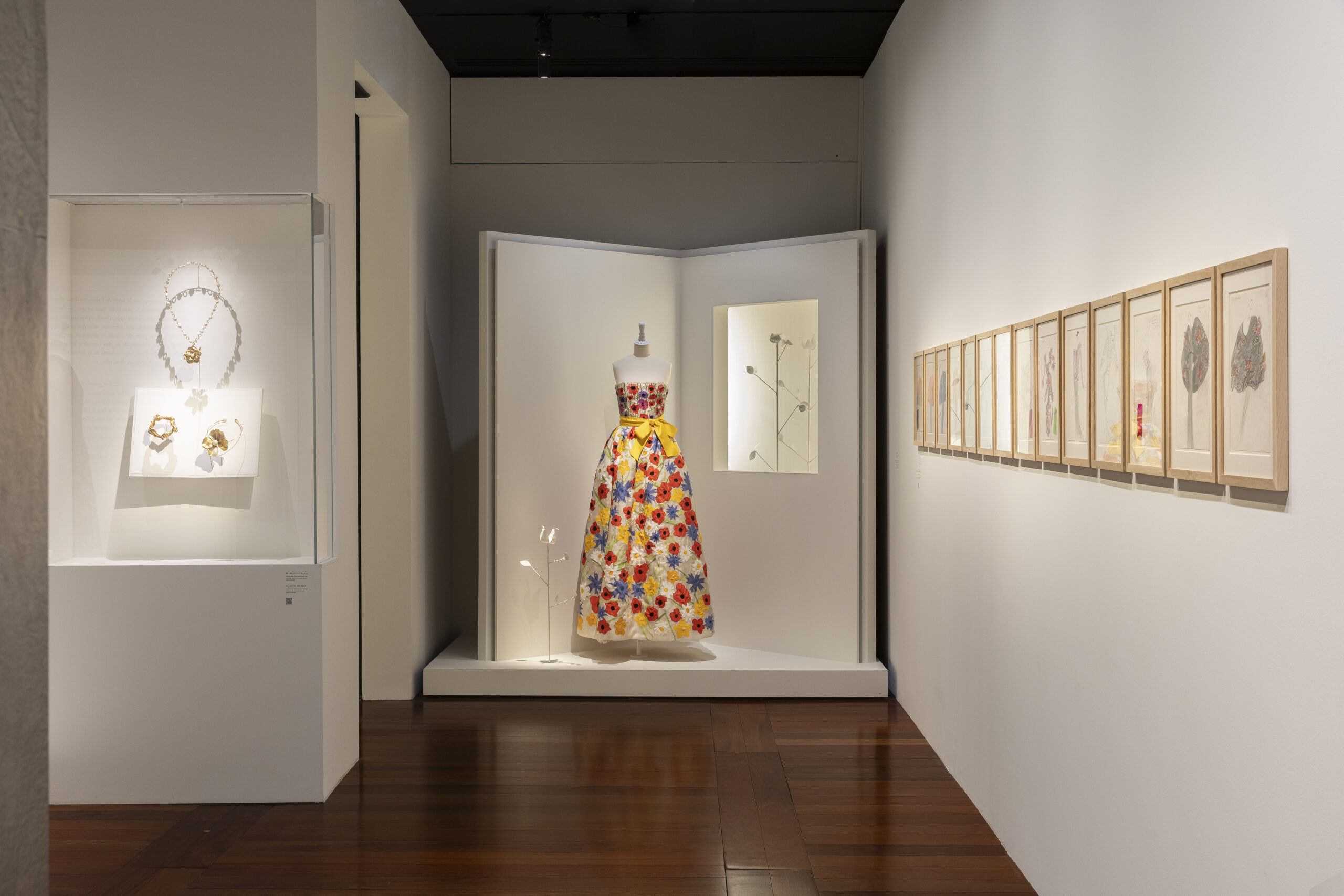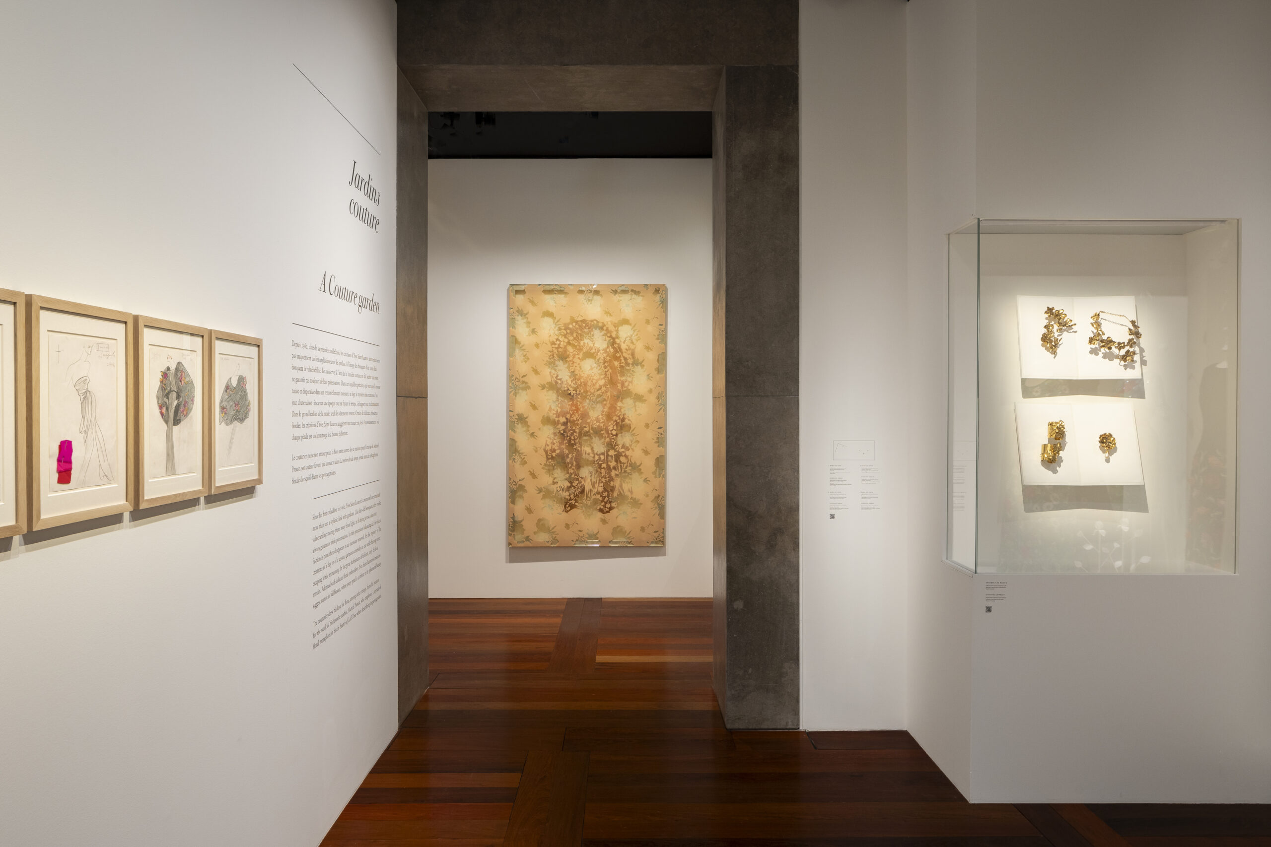 Le caractère éphémère et fragile des plantes entre en résonance avec le rythme saisonnier de la haute-couture. La conservation des robes est également à l’image d’une tentative de préserver la beauté d’un bouquet de fleurs. La mode se renouvelle constamment tout comme les floraisons au jardin. En parcourant cette exposition, les fleurs délicates présentes sur les robes du grand couturier nous rappellent combien les fleurs suscitent des moments de contemplation.