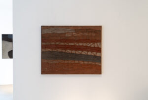 Entrer dans l’exposition, c’est pénétrer dans un autre espace-temps. Les œuvres ne cherchent ni l’effet ni l’éclat mais imposent une présence. Dans Sans titre (1969) ou Hiver (1970), des masses sombres s’adossent à des champs plus clairs, comme des blocs enchâssés dans un sol fragile. Les tableaux n’ont rien de descriptif : pas de ciel, pas de ligne d’horizon reconnaissable, mais tout évoque le paysage, non pas celui que l’on voit, mais celui que l’on ressent dans son intériorité.