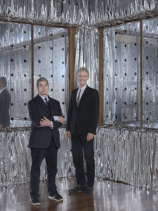 John Armleder raconte un détail d’enfance qui agit comme une clé. Le mot « observatoire » n’est pas un titre, c’est une position : celle du regard qui accepte de basculer. Et il nous glisse un fait presque secret : autrefois, un observatoire se tenait tout près du musée, voisinage discret qui fait résonner le titre comme un retour de mémoire. Il rappelle qu’« à l’époque, les observatoires étaient souvent doubles », avec « un télescope qui regardait vers le ciel, mais un autre vers le bas ».