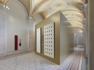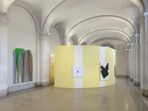 Des structures temporaires, inspirées de dessins d’Armleder et conservés au musée, transforment les espaces en réseau de « salles dans les salles », comme si l’on ajoutait au bâtiment une seconde peau.