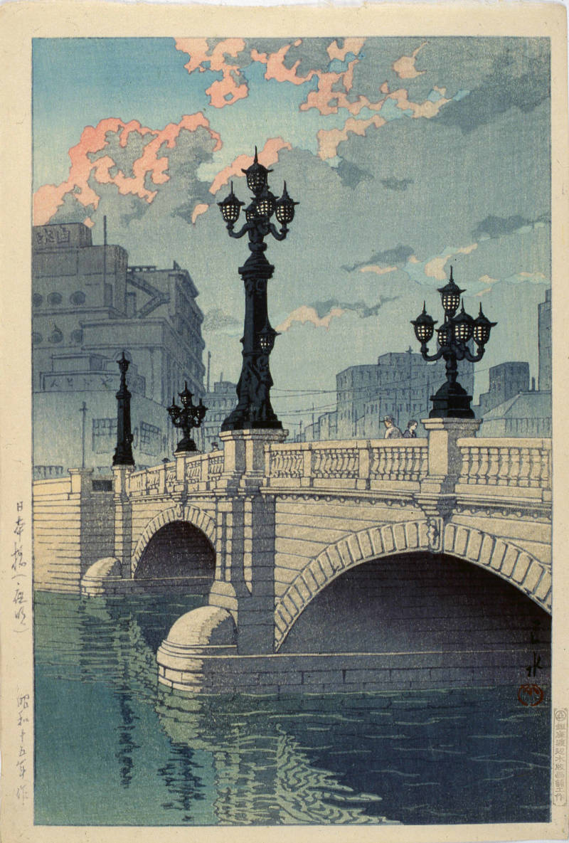 2- Le pont Nihonbashi à l’aube, Kawase Hasui, 1940, gravure sur bois, 36,4 x 24 cm