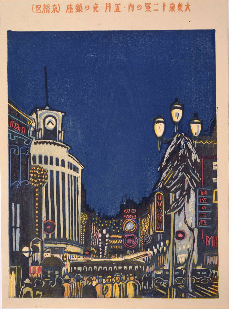 3- Douze vues du Grand Tokyo : Mai – Ginza la nuit (arrondissement de Kyôbashi), Fujimori Shizuo,