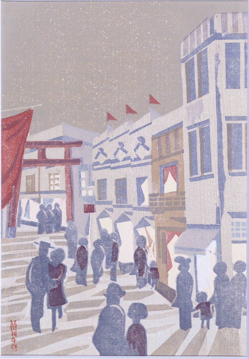 4- Cent vues du nouveau Tokyo : Le quartier de Hyakkendana à Shibuya, Maekawa Senpan, 1929, gravure sur bois, 24,4 x 17 cm