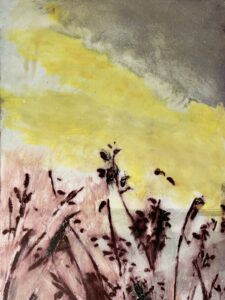 Le végétal autant que la couleur avaient une importance prépondérante dans les univers de Christine Patry-Morel. Elle chérissait les fleurs dans son jardin, dans sa maison, dans sa vie. « S’imbiber dans la couleur : Ça n’est pas par hasard » comme le dit son amie artiste plasticienne, Fabienne Yvert , « qu’elle fait une série de gravures sur les plantes tinctoriales, recherchant avec de l’encre la couleur exacte due à la plante. Regrouper dans un cadre la bourdaine, le myrtillier, la rose trémière et le sureau noir pour nous faire apprécier leurs différences de mauve-violet, nuancier de la nature. Mettre en valeur le jaune spécial qui différencie la serratule du genêt des teinturiers, retrouver l’or du crocus. Apprécier toutes les nuances ».