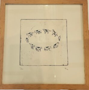 L’art a cette magie d’embellir la vie ou du moins d’en effacer les limites. Et dans les traces artistiques laissées, de quelques disciplines qu’elles soient, de retrouver la personne dans l’artiste. Au fil de la vision de ses gravures et des bribes de conversations saisies en aparté dans cette salle communale de Saint-Prix, il se dégageait le portrait d’une femme douce, attentive aux autres et aux siens, friande d’échanges avec autrui et curieuse d’explorer maints médiums pour s’exprimer. Les gens l’intéressaient pour ce qu’ils étaient, non pour ce qu’ils représentaient, elle aimait les lier tel la composition d’un beau bouquet. Elle parlait beaucoup des autres, peu d’elle, c’est ce qui se dégage de ses toiles, gravures, laques. Elle raconte le monde en le regardant du petit côté de la lorgnette, de préférence côté cœur. Une approche émotionnelle de l’art, liée aux impressions, aux sensations, aux ressentis, un dessin du sensible sans course à la notoriété.