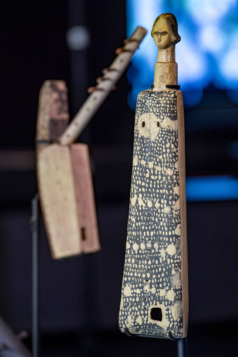 En voyant le grand silo de verre contenant la collection de plus de 10 000 instruments de musique du monde entier, Myriam Mihindou a ressenti le besoin de les libérer. Dans sa culture, l’objet est chargé en énergie, il est fabriqué pour créer des liens, optimiser la parole, transmettre les savoirs. Au contraire, les cultures européennes ont peu à peu réduit l’objet à une forme purement esthétique, parfois complètement déconnectée de sa fonction. Ainsi, notre rapport aux objets d’Afrique est-il faussé car nous le considérons avec notre propre référentiel, différent de celui de ses créateurs. L’exposition Ex Africa en 2021 du musée du Quai Branly, à laquelle Myriam Mihindou avait participé, nous en faisait déjà la démonstration, accompagnant ce glissement nécessaire du regard sur les collections des musées.
