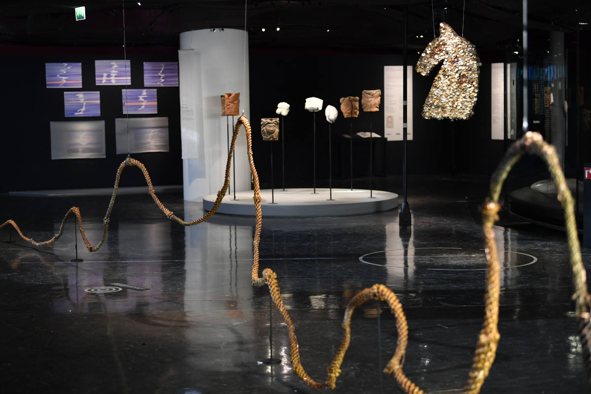 Visuels : Scénographie de l’exposition « Myriam Mihindou. Ilimb, l’essence des pleurs » © musée du quai Branly – Jacques Chirac, photo Thibaut Chapotot