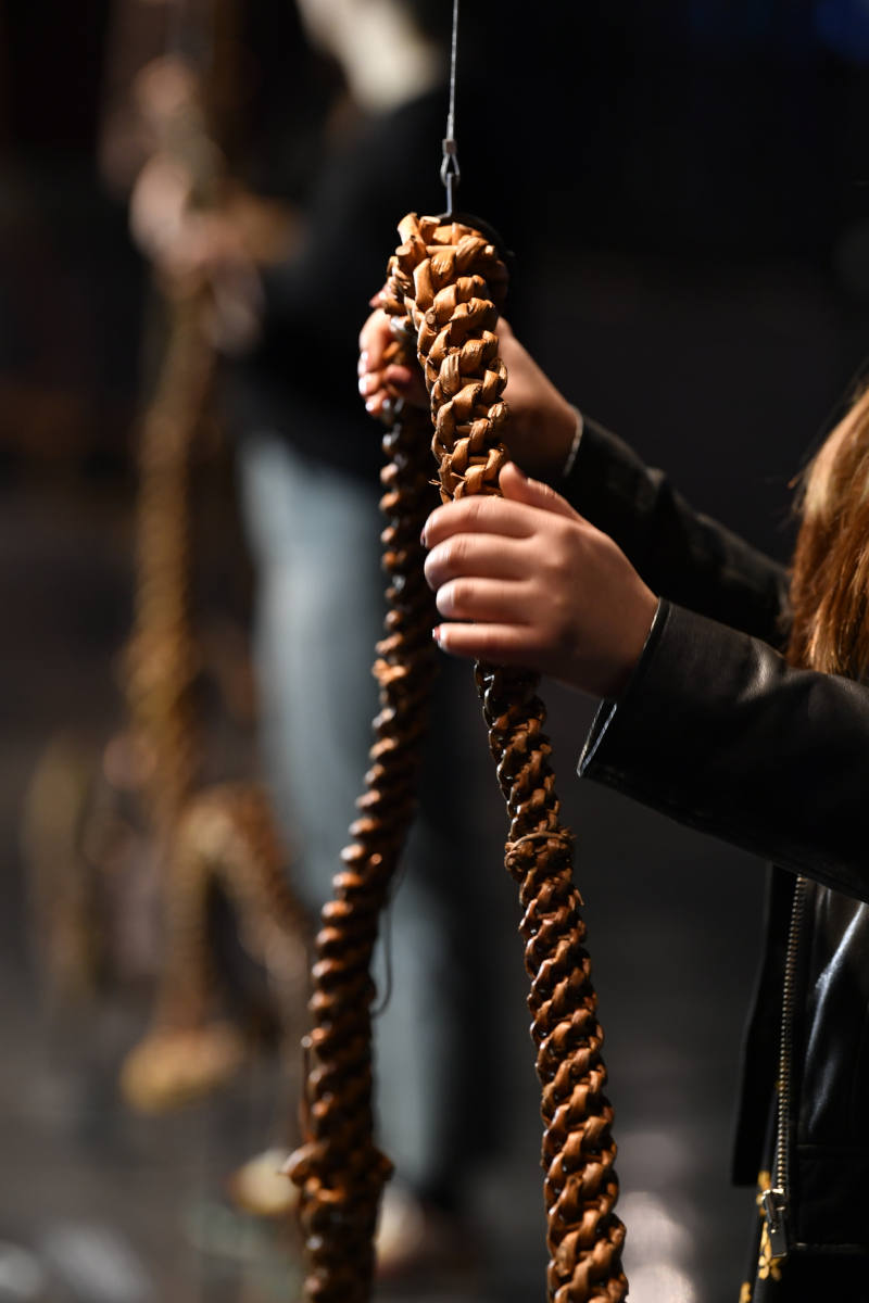 La carte blanche de Myriam Mihindou s’adresse au vivant, à des objets, des corps, des traditions. L’espace lui-même semble s’être transformé en une entité frémissante traversée de sons, de souffle, d’œuvres, de musique. Avec assez peu d’œuvres qui évoquent le rituel des pleureuses punu, la culture du père de l’artiste dans laquelle elle a grandi, Myriam Mihindou cherche à nous transmettre l’expérience de ce rite qu’elle a vécu. En stimulant différents sens, nos corps deviennent les réceptacles d’une tradition bien vivante visant à accompagner le mort. Et peu à peu, si on laisse les liens s’établir entre nous et les objets, ce savoir patrimonial nous traverse et nous connecte au monde.