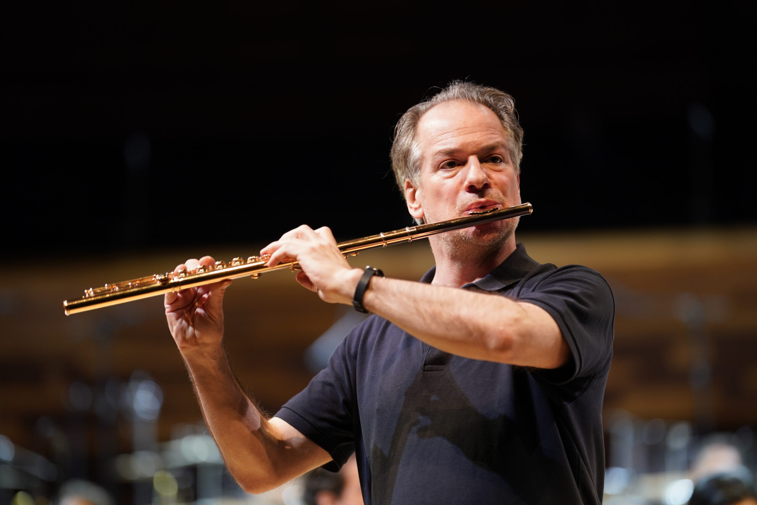 Emmanuel Pahud explore la nature instrumentale de son instrument en or massif avec la passion déterminée d’un Howard Carter qui découvre le tombeau de Toutankhamon après sept ans de recherches. Pahud fouille dans le moindre recoin sonore de sa flûte : il siffle, il pulse, il souffle délicatement, il crache, il chante. Il produit des sons lunaires, urgents, rauques, perçants ou encore des mélodies ondulantes d’une beauté époustouflante. Pahud défend le concerto dont il est le dédicataire comme personne, et au pupitre de chef, son compositeur dirige l’orchestre qui accompagne le soliste avec l’attention, l’émotion et la fierté d’un jeune papa qui accueille sans premier-né.